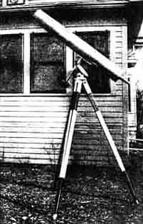"I am sending you," Mr. Norvell writes "a snap shot of my l6-inch reflector. The mirror was made of inch and one half glass. I took my time and did not let the surface get scratched, nor did I have difficulty with sticking. I did have quite a time landing a good correction on the glass but I had previously made two 10-inch mirrors and this helped wonderfully. "I ground the mirror to a focal ratio of 11 to 1. This is quite long, but it gives a fine fiat field, and when seeing is good it is hard to beat. The glass shows no flexure but I would not advise anyone to attempt a larger mirror with such thin glass. Anyone who wishes to try a 16-inch will surely have to be careful, as it is altogether more of a job than a 10-inch. "I can see with the telescope white objects, looking like foam, on the sun; also good markings on Mars; Jupiter's fine markings from pole to pole; and Saturn's rings and divisions. "The tube is 16 feet in length and 19-inches in diameter. The mounting is made of pipe; the polar axis is 4-inch pipe turned in a lathe to fit a brass box. The whole outfit is set in concrete. It took 215 pounds of old babbit metal to provide a heavy enough counterweight. "You will notice I have a sliding roof over my refractor, running on balls. "I do not know what I shall try next, but am thinking of attempting a spec, troheliscope." FRANK L. WATTS, Box 637, Silvis, Illinois, has made a Cassegrainian telescope. Mr. Watts writes as follows: "Enclosed is a photo o my 6-inch Cassegrainian telescope This is my first attempt at making one of this type. The small convex mirror gave me some little trouble in correcting but I succeeded in the end, so that the best of definition is had. "I get nearly as good results with this as with my 9-inch Newtonian reflector. and fully as good as with my 6 inch refractor. Owing to the long focal length the image is better near the edge of the field than in either of these other telescopes. "In correcting for figure I did all the testing with a 10-ineh flat, and find this gives far better results than by the ordinary method. "I have interested several parties in this work and expect to build a 16-inch. I have a well equipped shop and will be pleased to help anyone wishing to build a telescope. "I wish to thank you very much for aiding me, through your literature." BELOW we quote a fragment or two from a recent letter from Reverend W. F. A. Ellison, author of the original book "The Amateur's Telescope," most of which is now embodied in "Amateur Telescope Making." Last autumn the Telescope Editor spent a most interesting day wit) Ellison at the Armagh Observatory in Northern Ireland. A photograph of this delightful old place with its surrounding parks of yew trees and shrubs is reproduced in these columns. The Observatory was built about 1790 and is now used as a residence. It also houses a number of old telescopes and transits which are now curiosities. Carefully put away in a box was a neat brass reflector, about a 6ineh, used by King George III, who was an amateur astronomer. The two modern observatory domes do not show in the picture. One houses a 10-ineh, the other an 18-ineh, reflector; both of which are used by Ellison. He also maintains a government meteorological station. One corner of Ellison's workshop building, a thick-walled stone structure, is visible at the extreme right. As one might safely anticipate, this work room in which the superlative Ellison mirrors are made by hand, was utterly simple-no complicated apparatus, no "patent dingbats," no pretension. The testing stand was as plain as one which might be built to test a single mirror. Of course, an expert's main stock of "apparatus" is under his skull. Reverend Ellison stated that he has now completed 140 mirrors, instead of the 70 mentioned in A. T. M. To visualize this mentor of the amateurs the reader may think of a tall, large-framed, striking individual of about 50, with swarthy black beard, dressed in the cloth of the clergyman, with the leggings, the low broad hat and other habiliments of the protestant "Church of Ireland." He, it turned out, is also an expert organist, and his performance on the great electric organ of the Armagh Cathedral was equal in quality with his performances on optical surfers. Rev. Ellison writes: "I am afraid your people over there have gone ahead of my reach altogether. If I started the movement, I was like the small boy that rolled a stone down the mountain and started an avalanche. So, far from landing a lovely job like your Mr. Porter I am sometimes afraid 'The Amateur's Telescope' has knocked the bottom out of my market. Still, I am glad to think I have helped so many folks. Tell Mr. Porter, as well as the rest of the brotherhood of 'C. P. R.' (that is, not Canadian Pacific Railway, but ' Carborundum, Pitch and Rouge') that I wish 'more power to their elbows,' and I hope they will not forget the fellow who set the ball rolling. "The real difficulty about 16- and 21-inch jobs is in the mounting and using. I know from my experience with an 18 inch that observing with a 21 inch is no picnic.' (Later we shall explain this.-Ed.) RECENTLY several have asked why we did not pay more attention to observations and things actually done with the telescopes already in use by amateurs. One reason is that we lack the space to publish them in the magazine. We shall then, confine ourselves in this department more to the mechanical end of the work and we suggest that descriptive observations be submitted to our esteemed contemporary, Popular Astronomy (Northfield Minnesota). That journal has recently started a special department for amateur observers. These reports of such observations should be condensed as much as possible. One type of "observation" which does bear directly on mirror making-specifically on mirror figuring-is the matter of resolving power of a telescope, as determined by its ability to separate close double stars. A. R. Dunlop of New Westminster British Colu