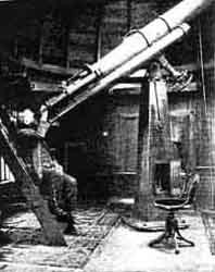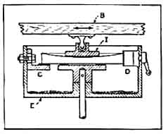 Professor Thomson's activities have been almost legion but he never has forgotten that he is an amateur telescope maker, one of the kind described by Professor Hale in "A.T.M." (page 180). At present he is "amateuring" a rather larger job than any amateur seems likely to tackle for sometime to come-the fused quartz disk for the 200-inch telescope. However, most of Dr. Thomson's activities have been in the electrical field. He is one of the founders of the General Electric Company, and is the recognized "dean of electrical engineers." He has taken out more than 700 patents the third largest number granted to any individual. His account is as follows: "AFTER having acquired experience in the making of two or three smaller objectives, including one of eight inches aperture, I determined about 1899 to construct a telescope of ten inches aperture, and mount it in a suitable observatory building. "To this end, I obtained two guaranteed disks of glass made by Mantois in Paris, from their agents in New York. These disks of flint and crown glass respectively were 10-1/2 inches in diameter. The crown glass disk had a density of 2.543, and the index of refraction for the D line (sodium) of the spectrum was 1.51709; (A line = 1.51139; C = 1.51446; F = 1.52335; G = 1.52848; mean dispersion C to F = .00892). For the flint glass disk, these values were: D line = 1.62842 (A = 1.60621; C = 1.61158; F = 1.62842; G = 1.63866; mean dispersion C to F = .01684). "It was decided to follow a form given by Steinheil, which gave a focal length of 135 inches, approximately, the flint disk to be the outer one. R1 is convex, R2 concave, R3 convex and R4 convex. "Four disks of heavy plate glass (porthole glass) were secured for grinders, and a machine driven by a small electric motor set up with means for reciprocating an iron grinder for roughing, and below this on a vertical shaft, a face plate about 7-1/2 inches in diameter to which the disk in work was cemented by three spots of pitch. "A CIRCULAR iron catch box open at top contained the wet grinding powder; in this case, Carborundum No. 40 or 60. This catch box, E, was 16 inches in diameter, and to it was attached an adjustable edge grinder of copper, D, for truing the edges of the lenses of glass disks. The small iron grinder disk, I, (about 4-1/2 inches in diameter) could be given a long or short stroke and set to move over either the center or the diameter of the revolving disk cemented to the face plate, or over chords of it. In this way, by changing the stroke, the roughing out could be made to produce either a concave or a convex form at will, and the radius of curvature could likewise be varied as needed. This small iron tool was used only for roughing out, as it could be given a stroke which would work on one part without unduly wearing down the other parts. "There was also a third beveling grinder, C, set to bear up under the edges of the lens disks so as to produce a level edge. The figure shows the general arrangement. All three grinders are adjustable. The iron disk can rock on the pin, which is carried by the reciprocating wooden beam B; the grinder under the edge at C can be raised as it cuts away the under edge of the disk; while the edger at D is made to swing toward and from the disk edge, gradually reducing it to complete circular form. The progress toward proper curves was watched either by a spherometer or by templates. "A very convenient way of making templates of desired radii is to affix a glazier's diamond to a radius bar and cut them from ordinary glass plates, such as window glass or photo plates. When long radii are concerned, this can be done on an open flat floor. In any case, the cut curved edges of the glass plates are ground together on a flat board until they match. This is a speedy way of securing such templates as are needed. In using such templates, the curved edges can be blackleaded by a pencil and applied to the lens surface, with a slight motion in the length, which will cause a mark to be made on the ground lens surface where the actual meeting contact is. "After the disks have been roughed out and brought to approximate radii, the work is transferred to the proverbial barrel, around which one walks. Care must be taken to support the lens disks evenly and arrange stops (generally of wood) to bear on the edges of the blank to keep it in place. Calipering the edge to secure even thickness all around is a necessity, and the grinding must be governed to do more work on the thicker parts until all is uniform. "In the case of my 10-inch, the surface R1-the outer surface of the flint glass disk-was ground to an approximate radius of 74.65 inches, but allowed to become considerably shorter; below 73 inches. This was to enable color correction to be better obtained, as estimation showed the likelihood of this provision with the glass used. The rough shaping was by the use of No. 60 Carborundum, changing to No. 120 when near the desired curve. "One of the plate glass grinders, ground down to present a convex side of about the radius desired for the concave side of the flint lens and the concave side R2 of the flint lens, was worked on the barrel with this deep convex tool and soon brought to a fit. The curve was adjusted by care, with the aid of the spherometer as a guide, to approach a value of 28.98 inches = R2. Local grinding at edge or center by small glass grinders enabled such adjustments to be made. Heavy glass tools, except for the rough grinding, were always used. They were generally a little less in diameter than the lens itself. A surface too concave is ground by strokes which avoid the center, while one too convex is worked so as to avoid the edges. In all cases the two fitting, surfaces-those respectively of the lens and of the glass disk about eight inches in diameter which is used to produce the surface-are brought to exact fit before measuring. In this way, I have altered long radii of surfaces by small fractions of