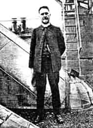 Peter L. Martin, lens maker, of 829 East Thayer Street, Philadelphia, writes: "One day Doctor Brashear told me to empty a vessel containing the residue of silver solutions that had been standing (Italics ours.-Ed.) and remarked that it had the danger of dynamite. Another time I was polishing within four feet of him when he was silvering a large mirror and as he poured the solution on the mirror the liquid went up in the air and some fell on the back of my shirt. "Every Saturday morning the professional optical worker, Mr. Octavie Petitdidier of Chicago, silvered, using the Brashear method, and it never exploded and we never mentioned goggles. Dates 1907, 1908, 1911, 1914. "About 1921, I gave a silverer the modified solution mentioned in Ritchey's book. When I asked him how it worked, he said, 'Say, that stuff exploded.' "I think the suggestion about wearing goggles is very good. The solutions have never exploded on me, but during the few minutes that it takes the amateur to pour on the liquid it is well worth while to take every precaution. I intend to wear goggles in future. "I have heard of several other explosions of the silver solution. In one instance an employee, in order to see better, pulled up the window shade and the solution which had been standing all night (Italics ours.- Ed.) blew up, when the daylight struck it. Another time a worker was badly hurt and laid up for several weeks. "My conclusion is that the original Brashear solution as given to the world by John A. Brashear is not likely to explode." NEXT we get testimony from K. L. McAlpine, 223 B. Sansom Street, Upper Darby, Pennsylvania, who writes: "Although I have used this process a great many times, on one occasion only have I met with an accident. In June of last year, having finished silvering a mirror, I placed the remainder of the silvering solution in a cold room in the laboratory. This room is maintained a few degrees above zero. This solution contained silver nitrate, ammonia, and soda only, as none of the reducing solution had been added to it. In view of the temperature and the absence of organic matter in the solution I considered it to be quite safe. In August the solution was removed to the basement and remained there for about one month. (Italics ours.-Ed.) The bottle was moved about many times during this interval. "The explosion took place one night, fortunately when no one was at the time in the building. Although there could not have been more than 50 cc of solution, practically every piece of glassware in the room was broken. Even a nine liter Pyrex bottle was shattered, and the white walls and ceiling were sprayed with the brown-black silvering compound. "While the Circular-Letter on silvering prepared by the Bureau of Standards very -plainly states that the silvering solution should be made up just before use, I believe that still more emphasis should be laid on this point, because otherwise I am quite sure that many, in anticipation of trouble with the silvering, will make up a stock solution." IN Pasadena, at 88 North Delacy Avenue, is the firm of Howell and Sherburne, designers and builders of special machinery and scientific instruments, including the Hale spectrohelioscope. Waldo E. Howell, son of the senior member of this firm, writes as follows: "I am very glad to tell you about two explosions which happened recently and were by no means mild. To give you a better idea as to the danger of this kind of explosion, I am enclosing a photograph of one end of our optical shop. The shelf marked 'X' with the arrow is the spot where the bottle of solution was at the time it exploded. This shelf was blown completely off the wall. The amount of solution in the bottle, which was not confined, was 16 ounces of silver solution ready to be mixed with reducing solution for silvering. Pieces of the bottle in which the solution was contained were no larger than fine shot, when we swept the floor. Small pieces of glass were buried in the shelf. I do not think the explosions would have occurred had the temperature been lower. It was about 85 degrees when I finished silvering, and this silver was left over. (Italics ours.-Ed.) It exploded of its own accord in solution. Fortunately, no one was standing next to it. "When I tell you of the second explosion I believe you will decide, as I have, that after the caustic solution is poured into the cleared-up silver nitrate solution, an explosion may occur at any time. This explosion happened in the middle of the process. I guess, before I go on, I had better stress the fact that in both cases directions had not been followed to the letter as to temperature, (Our italics.-Ed.) but I silver many times in the summer at 85 and even up to 100 degrees, and I really have no trouble, either with solutions or with soft coats of silver. However, in this case the temperature was nearly right, but I believe the difficulty came in after the silver nitrate solution had been cleared with ammonia. The caustic solution, having been poured into the silver nitrate solution, was not stirred and ammonia was not added for about ten minutes. When my friend, Mr. Seigel, did get back to the solution, after the ten minutes and started to stir and add ammonia, the explosion took place. "Everything would have been all right, had he gone right on as the directions say, but the interval between the clearing up of the silver nitrate solution and the pouring in of the caustic solution was too long, thus allowing the explosive silver fulminate to gather on top of the solution. Just as he started to take hold of the glass rod and stir, there was a terrific explosion. The 2-ounce beaker, which was of heavy glass, was never found in any pieces larger than BB shot. The fragments were lodged in the wall, below the surface. Mr. Seigel nearly lost his sight from the flying solution. He was in bed for a week, and later had to wear glasses. It probably seems funny that the solution will explode in water, but 