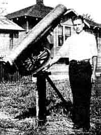 Well, is it? We can't ourselves answer this question and this is why: We are writing this screed on November 4th, many weeks ahead of publication, and at a time when A. T. M. is only in galley proof form. This is one of the delightful uncertainties of the editorial game-you are always forced to project yourself two months ahead and make wise guesses. And then, only after your guesses have gone into type and plates have been cast from that type and the magazine has been "run off" and is being sent in 32 directions of the compass, you may learn that your guess was bad. A month ago we made a bad guess-that A. T. M. was ready. Something happened. Something always happens. And something may happen again, but on November 4th we go on record as believing that A. T. M. will be ready when you read this. If not it can't be long and you may hang a curse on us for every solitary day's delay thereafter. We have labored on this edition, with its addition of about 200 pages, ever since last spring. One feature, with nine chapters, is a part entitled "Contributions by Advanced Amateurs." This means that the hobby has gone a long way since 1926 when we amateur workers were all glad to get hold of anything at all that would help us to make telescopes. The pupils are now the teachers. Ellison's statement that "the amateur has shown the way to the professional, and forced the pace for him, ever since Herschel's time," is beginning to apply in the present development. Silvering has proved to be such a bug bear to the beginner that we have made an effort to round up all the pertinent details on the process we could, and the result is a general symposium and digest on silvering which will run to about 20 pages in the book "Amateur Telescope Making." Most of the previously published instructions for silvering mirrors have left much to the worker's judgment, a commodity which only the born genius may be said to possess previous to gaining actual experience. We have also told how to make a lap-almost in disgusting detail, since so many have written about their trials and tribulations in connection with that cantankerous job. Other material prepared makes it look at present writing as if A. T. M. would run to nearer 500 pages than 400, with many illustrations added. A club of amateur astronomers and telescope makers is being organized in northern New Jersey by R. B. Butler, 963 Kenyon Avenue, Plainfield, N. J., and others. Other amateur astronomical activities are shown in the photograph at the bottom of the page, taken on the occasion of a joint meeting of the Amateur Telescope Makers of Los Angeles and the Citrus Belt Astronomers, held at Pomona, California. Mr. M. Nagata of Brawley, California, discoverer of "Nagata's Comet" a year or so ago, appears in this group (front, third from left); also Dr. H. Page Bailey of Riverside (extreme left) who seems to be a general all around genius and inspirer of telescope activities in that part of the world. A neat, compact split-ring equatorial telescope of the Porter type (A. T. M., Figure 26, page 27), made by him for astronomer Nagata, appears near the middle of the picture. Amateur telescope making in California appears to have gone co-ed; look the picture over! Incidentally there are 10 telescopes in it. Can you find them all? (No prize awards-it isn't a come on.) Whew! How the telescope pictures are coming in! Scads of 'em. We don't know how many telescopes have been made to date-probably over two thousand, especially since many individuals have made from two to a dozen-and no two have been alike. This is perhaps the most gratifying thing about the whole development. Some months ago we mentioned the question of standardization. Both in numerous letters and by spoken words we have been urged not to promote that idea. However, there need be no occasion to worry. We don't like standardization-it spoils all the fun-and we shan't come within a light- year's distance of flirting with the idea. Recently we made a call at the Corning, New York, main factory of the Corning Glass Works, where Pyrex is made, and saw some interesting things. Among others were some Pyrex disks for telescope mirrors. For the past few years Corning has been besieged by innumerable amateurs to make up some real Pyrex disks, instead of the makeshift kind hitherto available, and now they have done it. "The total cost of my mounting was under two dollars," according to Myron A. Elliott, 1120 West Prairie Street, Taylorville, Illinois, who is rather resourceful in the adaptation of this-and-thats to his needs. He used a Ford front wheel and axle as the basis for his mounting, made the tube of stove pipe, used a linen tester lens for an eyepiece, and gets a magnification of 160 diameters, though the distortion is bad at the edge. He made a finder from an old flashlight tube, a 10-cent reading glass and a small one-inch focus lens, and is satisfied with his telescope until he can build a larger one. To render his telescope portable, Frank Cornil, 2305 West 17 Street, Little Rock Arkansas, mounted it on wheels. He uses two spirit levels, a peep sight and four elevating screws, to make possible quick setting in the meridian. It has slow motions and is a rather complex, interesting piece of design. A Springfield type of mounting of rather elaborate nature carries a 6-inch mirror at the observatory of William E. Mueller of Sutter, California. Slow motions and brakes are provided for both axes. The second prism can be removed and the eyepiece inserted in its place. Except for the tube and a pipe cross, the mounting is all made of Ford pans. "One of the planetary transmission drums makes a neat cell-it seems to have been specifically made for a 6-inch mirror," Mr. Mueller writes. "I put this cell in a brake drum. The tube is of 1/2 by 3/8-inch channel iron. The telescope has a 9-foot concrete base and when not in use has a portable pick-up-and-carry-out-of-the-way canvas housing."