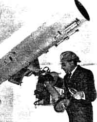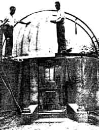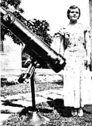 "Pittsfield, Massachusetts, the home of A. R. Everest, the discoverer of H. C. F., is now permanently on the astronomical map -its first observatory has been formally dedicated. The builder was Guglielmo Camilli, a General Electric Company engineer who entertained 30 of his fellow star gazers at a dedication dinner prepared in true Italian style. In honor of the great Florentine physicist Galileo Galilei, who was the first to apply the principle of the telescope to astronomy, in 1609, the observatory was christened The Galileo Observatory. "Patterned after its conventional big brothers, with revolving dome and electrically operated 'scope, the observatory is scientifically constructed throughout. The building is 12 feet in diameter, with reinforced concrete walls six feet high. The concrete pier on which the telescope is mounted extends four feet into the ground and insures absolute rigidity. A series of rollers and guides is embedded in the top of the concrete wall and supports a channel iron bent in the form of a perfect circle. Supported by semi-circular cross members, the galvanized iron dome is built of 45 segments, all accurately cut to size and punched for rivets in advance. Nearly 3000 rivets and 50 pounds of solder hold the dome together and make it water-tight. "The 'scope is an eight-inch reflector with a mirror by Everest, and is electrically operated by means of a Telechron clock mechanism. The axes can also be adjusted by hand wheels. All the machine work and scale graduations are of the greatest accuracy. "The only cost was for materials, as enthusiastic fellow astronomers helped Mr. Camilli from start to finish of the project. All trades, from wood choppers who cut 300 trees, to electrical engineers and professional mathematicians were represented. To place the observatory in operation it was necessary to extend a transmission line through a swamp a quarter of a mile to the isolated knoll on which it is built. Electricity therefore lights and heats the building (when work is to be done in cold weather and no observations are scheduled). Resistance wire around the sliding door in the dome, but insulated from it, can be used to thaw it loose in cold weather in case of ice or snow accumulations. The grounds outside have not been neglected, rose bushes and other shrubs being planted on the carefully leveled terraces around the building."It sounds like business doesn't it! ONE lady who evidently thinks telescope making is more fun than embroidering is Miss Wandalee Nickell, 716 North Isabel Street, Glendale, California. Here is what she wrote to us recently. Read it, show it to your mother, wife, daughter, girl friend, or what have you, and proceed to introduce her to the sacred rites of glass grinding. "I had my first view through a telescope two years ago, at the moon," says Miss Nickell. "The moon has been the cause of many events in life, but it gave to me that evening a most compelling urge to possess a telescope of my own, in order to study its beauty whenever I desired. I was 17 at that time and felt rather helpless, knowing I could not buy one. But something inside would not let me put the desire aside. "I was studying astronomy in high school and my instructor told me of your column, 'The Amateur Astronomer,' in the SCIENTIFIC AMERICAN. Until then I was unacquainted with the magazine but I have never missed a copy since. In the first copy that I turned to I found information which spurred me on-it was a picture of Mr. A. B. Stephens grinding a mirror in Burma, China. He was returning to this country, so I immediately got in touch with him. He is the nephew of the beloved optician, the late Dr. John A. Brashear. Was it a kind hand which guided me to him? I think so, as he proved to be my sole inspirer and I surely needed plenty of encouragement at the time, as my age, sex, and lack of optical knowledge were all against me. He had me obtain 'Amateur Telescope Making,' which was, I assure you, all Greek at first. But with plenty of hard studying on my part and patience on the part of a kind physics teacher under whom I was studying, I soon was able to get under way with my six- inch mirror. I shall never forget the inner thrill I experienced when knowledge was dawning upon me while I ground away hour after hour with success always in front of me-I never once thought of having failure. "As my mirror progressed I was worrying about the mounting. I had conquered optics to a certain extent, but mechanics were and still are a mystery to me. I owe a great deal to my father and other friends who helped me so wonderfully in getting it constructed. "As I went along I learned by making mistakes. My first one was not fine grinding long enough with my last grade of Carborundum, so I had to polish for 30 hours to get the polish complete. I had the usual turned-down edge, but did not encounter any real difficulty in parabolizing. My mirror has a very excellent figure. The focal length is 37-1/4 inches. I can use up to 300 power with good definition. In the picture you will notice that I have a finder on the telescope. I am proud to say I also ground and polished the lenses for this, and have made two eyepieces to date. I worked on the instrument over a period of ten months, and the cost was approximately 75 dollars. "I have used my telescope now for a considerable time and cannot begin to relate all the happy hours it has given, not only to me but to hundreds of others. I want to say here that 'Amateur Telescope Making' was the life saver and giver of many hours of beauty to be spent with the heavenly bodies. I hope this story will spur other girls on into the beautiful field of telescope making. There is no reason why it should be limited to men. If one girl can make one, hundreds of others can." So far as we know, Miss Nickell is the fourth woman who has qualified as a telescope maker and we wish there were more. Women often get the notion, based on a preconception, that they cannot