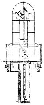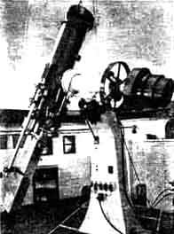"Reference to the picture [page 176.-Ed.] will show the dome which houses the 101/2" Pyrex reflector, in the lower right hand part of the picture. This instrument is carried by a Bruce type mounting and is used with many different combinations. Quartz secondaries provide for focal lengths of 200", 540" and 850". A 6", f/6.5 Petzval lens, which is often mounted on the side, provides speed and wide angle. "Early in 1932 work was started on an instrument which wechristened the 'spectroheliokinematograph'. Essentially this instrument is a spectroheliograph plus a motion picture camera and such an instrument makes it possible to photograph solar phenomena in the light of some chosen wave-length or element alone. The addition of the motion picture camera has made it possible, for the first time, to secure continuous records of solar phenomena. The spectroheliograph has for its optical train a Littrow type spectroscope employing a 4" Ross collimating lens of 72" focal length. This lens was designed by Prof. Ross and made especially for this instrument. A 4" grating, 20,000 lines to the inch, is in service at this time and the spectroscope, plus the camera, is mounted on the 10-l/2" equatorial telescope. Those who are interested in detailed descriptions are referred to the various publications of the University of Michigan Observatory" [usually available for consultation at the different professional observatories, but otherwise difficult, at this date, to obtain.-Ed.] In describing the new solar tower, McMath writes: "If the reader will refer to the accompanying line diagram, it will perhaps be easier to follow this description. Experience has taught us that there is no substitute for mass in designing a photographic telescope. Consequently, all parts of this instrument are very heavy. As an illustration, the combined coelostat and flat mountings will weigh a little over six tons. "Our dome on the solar tower is 17' in diameter inside, and the effective shutter opening is 4'. We used a standard water tank bottom for this dome and cut the shutter opening out with a torch. The base ring is an 8" x 6" x 1/2" angle and the weight is carried on eight rollers, spaced at 45 degrees. An additional eight spacing rollers keep the dome concentric. Construction is entirely of welded steel. "The outside shell is 17' in diameter and the inside tower is 6' in diameter. Each tower is supported on its own columns and the foundations for each set are separated. Optical tests made show that no vibration is transmitted from the outer shell to the inner tower, which carries the coelostat. The workroom is 28' in diameter inside the octagon, giving ample space in which to work. "Entrance to the spectroscope pit is through an underground photographic dark room, which will be provided with water and necessary equipment. The pit is 7' in diameter and 30' deep. It has an inner steel lining which was welded water-tight. This pit houses the spectroscope and is provide with a steel cage 2' square, of which about two thirds is carried on the bottom bearing and the remaining one third on the upper hall bearing in the pedestal. The pedestal at ground level, is 4' high and the actual net working surface of the rotatable pedestal top is a circle whose diameter is 52". "The coelostat mirrors are of optical Pyrex. The first mirror is 22" in diameter and 5-1/4" thick. The flat is 18" in diameter and also 5-1/4" thick. Sunlight passes through the shutter to the coelostat mirror, thence to the flat mirror, and then straight down the inner tower to a 12" parabolic mirror of 20' e.f.l., at the pedestal. This mirror is figured off axis, and returns the now converging beam back up the inner tower to a 9-1/2'' Pyrex flat [Note bracket.-Ed]. This flat reflects the converging beam to its focal point on slit No. 1 of the spectroheliograph. Provision has been made at this point for the use of a 16", 40' e.f.l. mirror to give a larger image of the sun. "Light from the first slit of the spectroheliograph travels down the pit inside the cage to the collimating lens. We expect to use either a 15' or a 30' spectroscope, as the need may arise. This diverging beam passes through a 6" clear aperture collimating lens and falls upon a 6", 15,000 line plane grating. Light of the desired portion of the spectrum is returned by the collimating lens to the second slit of the spectroheliograph. The camera is, of course; focused on the second slit. These slits are arranged to move in opposite directions at exactly equal speeds and the resulting picture is a spectroheliogram taken with light of one wavelength. "The coelostat and motion picture camera will be driven by the present equipment located underground, to the northeast of the 10-1/2" dome. All other slow motions, driving rate controls, chronographic recording, mechanism for controlling ratio of light to dark time on the motion picture film, and so on, that have been found essential in our previous work, are also electrically controlled in the new tower by merely extending the electrical circuits from this underground control room. Our method of driving and controlling equatorial telescopes has been described in the Publications of the University of Michigan Observatory. Space prevents a detailed description at this time, but it may be said that the reason for building a solar tower at this location is because of the fact that the existing equipment can be used in toto. "Some years ago the entire observatory was given to the University of Michigan and is now operated as a branch of the University of Michigan Observatory. It has been financed entirely by private gifts. If a satisfactory example of an amateur is an individual who fails to make money following a hobby, then the present director and staff are amateurs de luxe All of our equipment is 'home-made,' and has been built from designs made largely by the present director. The mounting and so on have been made by the Motors Metal Manufacturing Compa