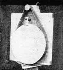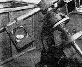 Mrs. Bessie M. Brownlow, 288 North Eighth St., Marshfield, Oregon, writes: "In perfecting the instrument shown in Figure 1, the Scientific American's book 'Amateur Telescope Making' was consulted freely and frequently. For the mirror a disk of commercial plate glass, 8" in diameter and 1/2" thick, was used. Grinding was done outdoors with the tool mounted on a deeply set post, and the time consumed was 8 hours, 5 minutes. "Applying the Foucault test, after a short period of polishing with the conventional pitch lap, revealed that I had developed a hyperboloidal figure. I could, of course, have reversed my disk and gone through the process of re- grinding, but instead I chose to rub out my error with rouge, and from that point forward I worked 'up-hill'. I poured a new lap and proceeded, but shall not attempt to explain at length the altering of facets and modification of strokes which were necessary before I was able to detect the shadows which told me that at last I had achieved a satisfactory parabolic surface. Final tests were made on Saturn and Vega with the mirror temporarily mounted in the tube, and even in its unfinished state the image was sharp and well defined." Mrs. Brownlow states that two sons assisted to the extent of devising the cell block and making the mounting, She also gives credit to Mr. H. B. Donahay, who had previously made two Newtonians, for his counsel. WE had always heard that H. E. Bussey of Atlanta was a wizard telescope maker who followed the hobby years before there was any "A. T. M.", but now it appears that the same household holds a wizaress as well. Figure 2 is a focogram of a mirror made by Mrs. Bussey, and Figure 3 is the ronchigram. The mere man in the case writes: "My wife had listened and looked in silence at 25 years of my efforts to make a good mirror. She said, some time ago, that if the materials were provided, she would prove that a woman could beat a man at it. I didn't like the way she said it, the man of course being myself, hence materials were immediately produced. I was not permitted to touch the mirror, except that in final figuring a 'pile of rocks' showed up in the central inch and I was permitted to use a small polisher to remove them, and of course I did this with careful supervision and copious advice from Mrs. Bussey. The mirror is excellent. A hair got across the film and looks like a scratch but there are none, and the central spot is the photographer's fault. I was the photographer " And Mrs. Bussey writes: "I realize that it would have been utterly impossible for me to have produced anything like as good a mirror if it had not been for the guidance I received,"-a graceful recognition, though we hate to publish it, preferring to believe that the ladies can do it without any help. In fact, we know one who could but, confound it, she won't. SOMETIMES we wonder just how important it is in the average case to test a mirror across different diameters. Once the test rack is adjusted so that the reflected cone strikes the most convenient place to do the testing, it is always a temptation to place the mirror on the rack with the same diameter up (usually determined by some landmark or blemish on the disk). This may have the unhappy result that some kind of flexure is accidentally masked, but it is human to take a chance, on the presumption that the figure itself is a surface of revolution and the flexure, if any, will sort of "unlax" if talked to in nice purring language-which it won't. From the depths of our stock drawer we fish up an old photograph, Figure 4 sent in 1928 by Mr. Henry H. Mason of Florida, since deceased. It is self-explanatory-a belt hung from a pulley, with a little crank for rotating the mirror. Before his death Mr. Mason was building a large (20"?) Cassegrainian and had a large Ritchey-type grinding machine. These remain at East Pensacola, Florida, a fact which may interest some southern amateur on the look-out for something that ought to be put into use. AS these notes are being written, on October 15, it is at last possible to say something a little less indefinite about that "new book" we have been promising for a year or so. At last we were able to get in all the many contributions and work them up into a single pile and this, when sent to the printer on September 18, made a manuscript of 860 typewritten pages. This is now being set in type and every day or two brings us a dozen more galley proofs to be corrected and sent to the authors to be again read and corrected. As there are just 47 chapters, some of them as long as many books themselves, all this is quite a "job of work" (try it and see). When will the book be ready? We still don't know, and if you are impatient please don't shoot the editor-he is doing his best We have set our hopes on being "out of the trenches by Christmas." Piloting a complex book through preparation is worse than rearing quintuplets, and this is a complex book-in addition to which there will be a lot of it-pretty close to the size of "A.T.M." and on the upper side at that. Here are some of the chapter subjects: Everest on his close mirror technic. (He was asked to set down "everything he knew," and this item should run to 30 pages of compact dope, all practical and definite. If you've seen some Everest mirrors you'll know what that means.) Chapter on use of sub-diameter tools. One on metal 3 tools. Another on metal mirrors. Warner on detecting astigmatized mirrors-a subtle game, this. One on the Zernike test, by Dr. Burch, English physicist. Huh-what's that test? It's a new one and mighty interesting. Selby on flat making-full, detailed dope. Clark on small lenses and eyepiece making-all practical and very detailed. Taylor on the metal parts for a refractor, likewise practical. Kirkham on rifle sights. Haviland on the refractor-the longest chapter in the book, about 40 pages uniform with those of "A.T.M." Chapter on making setting-circles. H. A. Lower on design of clock drives, with