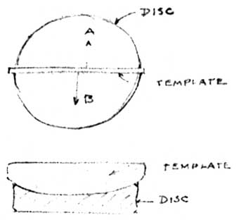 Amateur telescope makers in any community will testify to the interest their telescopes have aroused locally, some of the owners deciding they have become too popular by half, since the townspeople had learned where to get a free peep at the moon at all hours. One man threatens to "leave town or else commit suicide," in order to escape this kind of popularity, but others have enjoyed the nightly visitors. J. Milo Webster of Wyoming, Pa., has kept a visitor's book at his observatory (see pictures in "A.T.M.," pages 455, 456) and says the book was entirely filled up, last summer, with 4000 visitors' names! In Rochester, N. Y.-the optical city-they had a hobby show, with stamp collectors, painters, cactus growers, micro-biologists, engine model builders, fancy quilt makers, and telescope makers among those represented. The Rochester Astronomical Society, with a membership of 100, won the silver cup as First Prize. In that city, too, the university is apparently in contact with the telescope making hobby, as the Rochester Astronomical Society has the co-operation of the university Department of Optics. New astronomical and telescope making societies seem to spring up daily. Photographs of two of the older clubs are shown in Figure 1. In half-tone reproduction the reader can't clearly make out features, but we have been all over the original photographs with a 2" lens and, as we used to say in the army, each club group is a "fine body of men." WHEN we first published "Amateur Telescope Making," 11 years ago, we had no idea the hobby would take such a determined hold on our readers, but today, in addition to that book, now in its fourth edition and "going strong," we now have the new book "Amateur Telescope Making-Advanced," the sequel to "A.T.M." and 150 pages larger. This most recent book harks way back to a thought we had while lying abed about 11:23 A.M. one Sunday morning in 1925, even before the thin first edition of "A.T.M." was conceived-namely, to bring together, in one place-that is, between the same two covers-reprints of some of the things we had already been chasing up in different public libraries, at considerable inconvenience. Other items in "A.T.M.A." have been written by amateurs who took up the hobby as beginners soon after "A.T.M." first appeared. Together they show how the amateur, starting at scratch and in ignorance, has performed the feat of virtually lifting himself aloft by his own bootstraps-a process of levitation which still continues, for standards improve every year. In dividing "A.T.M.A." into two parts, one on practical "optics" making, the second on the "more practical aspects of observing," we have had in the background of our mind the possibility that, some day, if the hobby continues marching on as it has, each of these parts could be enlarged and built into a separate book. Readers' reactions to that thought are solicited. Would there be enough market for the second book (on observing) to make it economical?-say, a sale of 3000 copies-for these books must pay their way in the world. However, avast with thoughts of making new books for the present: what we now want most, after just a year of spare time work at home, in preparing "A.T.M.A." (all this hobby. work being done on time sneaked in between regular work on the magazine) is to do a long stretch in an overstuffed chair, with time to yawn frequently. Ho, ho, hum-haven't been to the movies in years and Mae West is on tonight. By the way, please turn in proof errors, found in reading "A.T.M.A." We save these with care, against a later edition. In case you prefer the drawing in Figure 2, to the one on page 521 of "A.T.M.A.," you may cut it out and substitute it. When invited to make the drawing for that humorous page to provide a break between Part I and Part II, R. W. Porter sent us two drawings-perhaps we selected the wrong one. Every amateur should learn this song, a parody on the Gilbert and Sullivan light opera "Pinafore," with its catchy music. Speaking of songs reminds us of poetry. The Enid Crawford Pierce who wrote the verses about dinosaurs, on page 196, is Mrs. John M. Pierce of Springfield, Vermont. Some think the philosophy is a bit gloomy but the verses reached us one day when we felt just that way. So we accepted them. We are born, we grow up, worry about income taxes, make telescopes, make other telescopes, and die. "What's the use-only an egg yesterday and a feather duster tomorrow." But tomorrow, unless it rains again, we may feel different. HERE is an interesting note by R. W. Porter. See Figure 3: "If a template used either as a grinding or polishing tool is moved across a spherical concave disk it will automatically produce a paraboloidal surface of revolution. The tool (template) moves parallel to itself from about A to B, the disk slowly revolving beneath it." CONSIDERABLE interest has been shown in small items regarding the theory of polish, publishedhere from time to time, the question being whether polishing is submicroscopic scratching or some kind of molecular flow. The following is from a recent article by Dr. Wilbur B. Rayton of the Bausch and Lomb Optical Co., in The Review of Scientific Instruments, Vol. 7, No. 9. "In the process of grinding, the particles of emery plough out channels by 'springing' out a series of small chips. Apparently the emery particle serves as a point of compression building up pressure until the glass is locally strained beyond the elastic limit, whereupon a chip flies out and immediately the process begins again at a point a little farther along. The chips are removed by a process quite similar to the process by which flakes of flint are sprung out of the surface in the fashioning of arrow heads. "The polishing process is not so well understood. The ground surface consists of minute hills and valleys. Does the polishing process remove material from the hills until all of them are reduced to the level of the bottom of the valleys or does the materia