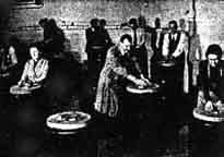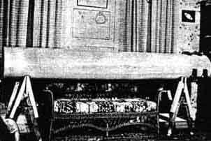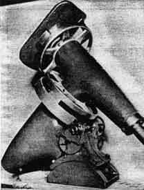 The telescope is a 12-1/2", f/8 Pyrex-mirrored reflector and the 50-pound tube (Figure 2) is made of 20 strips of wood, 1" x 2-1/2", each grooved, the whole glued together, planed, and sandpapered. Ibarguen writes: "My wife, who has worked with me from the grinding of the mirror to laying the stone terrace seen in Figure 1, and on the construction of the observatory, helped paint the tube." This attitude-correct attitude, of course, for any telescope making amateur's wife-doubtlessly accounts for the place of honor given the tube in the Ibarguen living room (Figure 2). This is the place where all amateurs should store their telescopes. In addition to this evidence of uxorial straight thinking, Ibarguen's communication states that his wife painted the inside of this tube by crawling through it, but it possibly will be inexpedient to call this little technicality to the attention of the average wife (inside diameter of tube, 14-3/8"). [Speaking of amateur telescope makers' wives, the old joke about the man whose wife gives him an urgent letter to mail and -then discovers it the following spring in his overcoat pocket-unmailed-is no joke, but here is reverse English: An order for ATM has been received bearing a penciled P.S. in another handwriting which frantically asks: "Please rush! My husband gave me this to mail and I forgot it!" The letter was received 13 days after its own date-line, from a distance usually requiring only one day in transit. (To the one reader on whom light and suspicion are now dawning: no, not even if you correctly guess it will we let the lady down. See Luke 6: 42.)] Heeding innumerable recommendations for solidity, loudly preached and prayed for by Porter, Ibarguen based his telescope on a 7' concrete pyramid reaching 6' below ground (deep frost line in Maine), 68'' square at base and 32'' square at top, surmounted by another concrete pyramid I4'' x 32" which tapers to 9" x 11" at top. The mounting (Figure 3) is by Harry Lee Armiger, of Detroit, and is rugged and pleasing in design. Note latitude saddle. IF you admire stick-to-it-iveness, and perhaps envy it, the job shown in Figure 4 may tell you the kind of patience you will have by the time you reach about the age of Mr. Elroy Gray, of North Jay, Maine. Ibarguen thus describes Mr. Gray's celestial globe: "The complete globe is the product of Mr. Gray's ingenuity. Even the wood for the stand was grown on his farm. The sphere is over 17" in diameter and about 7000 stars are shown. The ball is constructed of successively smaller and smaller wooden rings, glued together, beginning with the largest at the equator and working toward the poles. This rough ball was then put on a lathe and made accurately spherical-and it is accurate! "Triangles were then cut from a good grade of paper and cautiously glued to the wooden ball. This procedure is extremely difficult and guaranteed to make the most delicate of men use profanity befitting a mule driver. The various circles were beautifully drawn, and finally the stars were carefully printed. The dies used for printing these were made of common nails, filed flat on the ends and cut into various shapes and sizes, to represent stars of different magnitudes. The prevailing background of the globe is blue, the Milky Way being of a slightly different shade. Description is inadequate, for you must see the globe to appreciate fully its exquisite workmanship. The following are a few of Mr. Gray's hobbies: telescope making, including mirrors, objective lenses, flats and prisms; violin making; photography; and wood working. He made his first telescope about 50 years ago, and has made in all 18 or 20 telescopes, his latest triumph being an excellent 5" refractor." FOR an observatory dome, which paint is superior, aluminum or white? "To help settle the point," H. E Dall writes from 166 Stockingstone Road, Luton, Beds., England, "I have obtained two maximum-minimum thermometers and am painting two similar boxes-each ventilated to about the same relative extent as my observatory-one white and the other aluminum. A week's readings of the temperature differences in each box exposed to the sun, etc. Ought to prove helpful. The one showing the least daily difference between maximum and minimum should be best." Some time later Dall writes as follows: "The tests have taught me quite a lot about the subject of radiation and emission. The upshot is that, if an observatory is for purely solar purposes, white paint is best, but if for night work, aluminum paint is best, and by considerable margins at that." The domes on Mt Wilson are aluminum painted. FOR several years many amateur telescopticians have known that a Schwalz-schild reflector was being made by Professor Cogshall of Indiana University, and now the job is completed. Professor Cogshall has not been doing much shouting about this job; we suspect he was mainly busy really doing it. On another page in the present number readers will find a photograph of this telescope, in connection with Professor Russell's article. There it is characterized as "unique." This means that there is only one Schwarzschild and this is it. For years writers have written and speakers have spoken of the Swarzschild as if it were old stuff but the plain fact is that, all this time, it has existed only on paper-Schwarzschild worked out optics and nobody had the enterprise to go ahead and actually make one. In the photograph shown with Professor Russell's article the guiding telescope will interest amateurs: the objective is separate-no tube- and there is a diagonal opposite the declination axis which shoots the light down that hollow axis and to another diagonal belonging to an eyepiece. Professor Cogshall, who designed this instrument, and ground and figured the mirrors, is at the guiding eyepiece. Anticipating inquiries from amateurs who will now itch to build Schwarzschild (and probably itch worse while doing it) we answer these here, in advance. There are no "inst