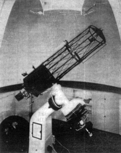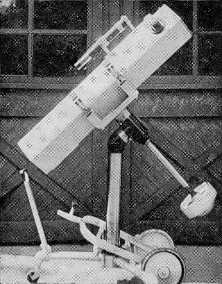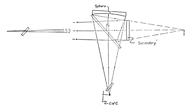 CLUB: Clyde W. Tombaugh, Lowell Observatory, Flagstaff, Arizona the amateur telescope maker who found Pluto, in order to obtain 16" Pyrex disks for other amateurs at a relatively low cost, offers to sponsor a "Sixteen-inch Club" which, if it obtains 20 members within six months will be able to purchase such disks at only $35 each. Regular price for this size, solid type, where single disks are purchased, has been more than $100 higher, because the high cost of producing single disks is chargeable mainly not to the glass or to the pouring, but to making the mold. Corning Glass Works, Corning, N. Y., has agreed with Tombaugh, the sponsor, that it will receive checks for $35 each and hold the funds six months or until 20 orders have come in then make the disks: failing this, refund the moneys. Three orders are lined up already. Tombaugh has also ascertained that Pittsburgh Plate Glass Company, will supply 16" tool disks of 1 1/4" plate, boxed, f.o.b. factory at Ford City, Pennsylvania, at $7.80 each. There's a lot of difference between a 16" and a 20", not alone in weight of the disk, where the 20", if worked without a machine, is a real backache, but in bulk and cost of the mounting, for the mass ratio between the two is almost as one is to two (calculating from the cubes of the respective diameters). The 16" size should afford a pretty telescope, big, impressive, powerful, yet not too big. For many, a 20" is. STELLAFANE convention, Saturday, August 2. ADVANCED amateurs and groups who are planning rather large reflectors will find a cleanly designed 24" described in Vol. VIII, No. 6 the Publications of the Observatory, University of Michigan. This publication, while not available for general distribution, may be consulted at astronomical observatory libraries. The 24" (Figure 3) was designed by Robert R. McMath and George H. Malesky, of the staff of the MeMath-Hulbert Observatory. The former is an amateur telescope maker and astronomer (motor car manufacturer) who turned professional and is widely known for his tower telescopes, his spectroheliokinematograph and other instruments, at Lake Angelus, Pontiac, Michigan, also for his educational motion pictures of the planets and of solar prominences. The new telescope will be used first for doing over these films, with the greater resolution it affords. The skeleton tube is made of longitudinal struts of 13-gauge steel having box sections. The center ring is made of six pieces welded together in box section. The tube assembly has proved to be very rigid. The tube center section and cell are of 3/16" rolled steel with ring flanges, the assembly welded and thrice annealed. The 24" Pyrex primary is an f/4 and there are two secondaries of 3 1/2" and 5 1/2" diameter, to give, respectively, f/25 and f/50. The primary was figured by Halley Mogey, of the Perkin-Elmer Corporation, and tested by Dr. Heber D. Curtis, who reported it an unusually fine surface. The two high-magnification secondaries presented real difficulties and E. L. McCarthy, now optical designer with the Perkin-Elmer Corporation but formerly an amateur (see "A.T.M.", page 389), feeling that the conventional tests were inadequate, proposed a new test which eliminates the combined testing of primary and secondary. This was used by Halley Mogey to test the secondaries, and proved to be an unqualified success, according to McMath. This new "McCarthy test," as we suggest it be known, is described by McCarthy as "A New Test for Convex Surfaces," in the Journal of the Optical Society of America, February 1941, pages 107-108, as follows: WHENEVER the object or the image point of a reflecting surface is virtual, as in the case of a Cassegrain secondary mirror, testing is more of a. problem than it is when both conjugates are real. Ideally, the test should permit a complete view of the surface at a convenient angular size; it should not involve large and expensive auxiliary pieces; it should not depend on slow measurement of zonal foci, but it should produce a simultaneous darkening over all parts of a perfect surface when a Foucault knife-edge is introduced. "These conditions are reasonably well met by the system shown in Figure 4. Light from an illuminated pinhole passes obliquely through two plane-parallel glass plates to a silvered spherical mirror. Reflected first from the sphere and then from the large plate, the light converges toward the virtual focus of the secondary mirror, which returns it through the plate to a real focus at the knife-edge. These two foci, of course, represent the conjugates for which the secondary mirror is to be free of spherical aberration in actual use. "Since the large plate has a considerable thickness, it introduces serious aberration into the beams of light diverging and converging through it. It is the function of the two small plates to cancel the unsymmetrical aberrations such as lateral color and coma. To effect this compensation, all three plates are of the same thickness, and the small ones are set at t he same angle to the axis as the large one, but in the sense which restores the displaced axis. The longitudinal aberrations, such as astigmatism and spherical aberration, are augmented by the small plates and must be removed in a different manner. If the pinhole is displaced from the center of curvature in a radial direction, either toward or away from the spherical mirror, aberration is introduced of the proper sign to cancel the spherical aberration of the plates. Astigmatism is compensated by displacing the pinhole laterally with respect to an axis of the sphere, since the astigmatism in the field of a concave sphere is of the proper sign to cancel that of the plates. "Obviously the conditions will be different from one case to another, depending upon the character of the mirror to be tested, the thickness of the plates, and the axial obliquity through the plates. It is therefore desirable to calculate the correct arrangement for each case by ray tr