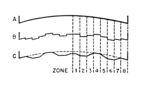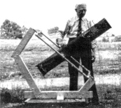 PERFORATED sheet iron makes an attractive telescope tube, and one which is well ventilated and thus not subject to the pocketed air current effects that sometimes are troublesome where the tube is solid and the mirror closed in--effects that often cause a deterioration in seeing. Rev. J. F. Peat, Bellville, Ohio, a retired China missionary, who used to do star gazing in China, used this material, bought at an ordinary hardware store, in the 6" reflector shown in Figure 2. His mounting, a double yoke type with pipe-fitting declination axes, has elements of originality and he says the telescope gives complete satisfaction--"I really have a grand little telescope." It has a celluloid protractor declination circle. THIS magazine's stock of copies of the book "Amateur Telescope Making" having become once more exhausted, a new printing was made and the opportunity was used to make a few minor corrections and to revise entirely the last 36 pages of the book. Yet we don't think this is enough of a change to justify calling this a fifth edition--maybe you'd feel a bit cheated--so it is still the fourth edition. Fourth edition, third printing, to be precise. The old book reviews on pages 469-476 needed revision, likewise the Directory, and, especially, the list of astronomical and telescope making clubs. Wates, of Canada, also didn't like the index; nor did various others, including your scribe, who originally made it. So practically the whole back-yard part of the book was chucked out and a new one made. Much more space than before has been given to the book reviews, both for their number and detail. Practically all the important astronomical and telescoptical books in the English language are now not merely listed in "A.T.M." but described in some detail. The new printing reviews 76 books (and it was a real job to do the reviewing). Not all are new books--mere newness isn't, in this field, the universal criterion of usefulness--but mainly the books have been published within the last few years. Nearly a page, for example, is given to telling just what's in Conrady's famous "Applied Optics and Optical Design." Few can afford this expensive work, not very many can even understand its mathematics, but nearly all would like to know approximately what it's like. Or just what's in the Ephemeris. There is also a new list of astronomical journals, a new list of astronomical societies, a list of 70 local groups of amateur astronomers and telescope makers. To compile this and obtain the correct names, also local addresses that are likely to remain relatively permanent, required a large amount of correspondence and sleuthing. This list of clubs--the most complete now available anywhere--should be valuable to many users of "A.T.M." The "Last Word to the Beginner" was left in and, with misgivings, that odd portrait at the bottom of it. Wates volunteered to make another index, and now your scribe therefore has a goat on whom to lay future peeves, if any, about the index. (Probably Wates didn't think ahead that far!) Here are the minor corrections for the main part of the book. Page 16, line 34, after "flat is," add "one of." (We believed that--years ago.) Page 27, line 4, delete "our greatest of all mirrors." Page 34, two thirds way down, substitute "often" for "usually," with regard to Huyghenian eyepieces (when that was written they usually were) . Page 54, third line above bottom, delete "need not be exactly" and substitute "ought to be quite." (This shows how far the amateur standards have moved since this was written.) Page 58, second line below Figure 47, add "at first." (That, too, was written in 1926 but won't get by today). Page 60, in line 8, substitute IV, Figure 37. Page 111, near middle, formula below "Substituting," the minus sign in second term should be an equality sign. Page 344, line 30, "over" should be "one." Page 370, fourth line above bottom "tool" should be "disk." Page 381, kill final sentence. Page 382, in figure, alter denominator of formula to F--l/2 (A-a), which Wates points out will be a little more exact, especially where large prisms are involved, as in an R.F.T., for example. Big help, Wates. And now-- NEW method of zonal testing is offered by Cyril G. Wates, 7718 Jasper Ave., Edmonton, Alberta, Canada, in the following discussion: The increasing popularity of short focus mirrors is making the subject of zonal testing of great importance to the amateur. Of all the mistakes into which the beginner can fall, perhaps the most elusive is the completely erroneous notion that, because a given zone or series of zones tests correctly, therefore that part of the mirror requires no further attention; in other words, that figuring may be confined to those zones which are, by zonal tests, undercorrected. For the sake of simplicity, consider a spherical mirror, 8" in diameter and divided into eight half-inch zones. Assume that all zones have the same focal length; that is, zero aberration. In Figure 3, A shows a cross-section of a true sphere. B represents the same mirror with all zones of exactly the same focal length or, to state the case more correctly, with all zones having exactly the same center of curvature. Than this, there can be no clearer demonstration of the fact that zonal tests are not the final criterion by which a mirror must be judged, but that each zone must be considered in relation to the zones on either side of it. A step-by-step surface such as that shown in B is, of course, never encountered in actual practice. In fact, it would be impossible to make such a surface, since our method of polishing insures that each zone shall blend into the adjacent zones. We do, however, meet with such surfaces as that shown in C, in which zones 2, 4, 6, and 8 are exactly the same as the same zones in B, while zones 1 and 5 are undercorrected (short) and zones 3 and 7 are overcorrected (long). Obviously the entire surface must be worn down to the level of zones 4 and 8, and it is also 