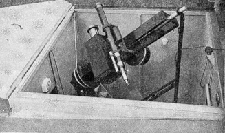 Just beyond this run-off roof a third has now been added, to house a camera and mounting. The roof of this addition rolls off to the north, and the south gable visible in Figure 1, near the telescope, is hinged and lets down on a post. Thus, John Bunyan, a pilgrim originally from New York State, has progressed from one to two, and from two to three, observatory entities. The recently added camera assembly (Figure 2) was built, Bunyan states, largely with the help of Carl Conder, a good local mechanic. Bunyan writes: "The supporting frame and the rectangular polar axis are built of 5" channel steel. The ends of the polar axis are of 2", steel shafting, the lower, which carries most of the weight, resting on a thrust ball bearing. The upper bearing is plain. The declination axis is made of 2" steel shafting with one end threaded and screwed into a steel plate which is bolted to a piece of 3/4" plywood, 16" square. The camera and guiding telescope are fastened to the plywood. "The counterweight at the other end of the declination axis is a steel pulley partly filled with concrete. The right ascension and declination circles are turned out of 3/4" plywood and are bound with brass strips (kind used to cover joints in linoleum). Tightly fitted over the brass strips are circles formed of 45" lengths of steel tape. Thus each 1/8" on the declination circle is 1°, and each 1/8" on the R.A. circle represents 4 minutes of time. "The camera lens is a 4 1/8" group portrait lens of about 25", focus. The camera box is built of wood and is equipped with plate holders for 5" x 7" film. The eyepiece used in the guiding telescope is homemade. It has a biconvex lens and the crosshairs are made from tungsten filaments taken from an old style 25-watt lamp. These are illuminated by a flashlight bulb. A full sized dry cell, contained in a can mounted beside the telescope, furnishes the current. A volume control from an old radio is used as a rheostat to dim the light. "A 12" cast-iron worm gear (Figure 3) with 96 teeth moves the polar axis by means of a friction clutch. This gear is driven by a single-thread hardened steel worm fastened to a steel shaft which carries a 30-tooth worm gear. The latter is driven at sidereal rate by a double-thread steel worm which turns at 1 rpm. A Hansen synchronous motor, with shaft geared to 1 rpm mean solar time, furnishes the timing and acts as a brake against the pull of a weight and sashcord over a plywood pulley on the polar axis. Interposed between the 1 rpm motor output and the 1 rpm sidereal rate of the last-mentioned worm are spur gears giving a ratio of 364 to 363, which is the closest I could approximate the sidereal rate with stock gears. However, the error is so slight that it is inconsequential for the periods the camera is at work. "There is a clamp on the declination axis with worm for slow motion. A worm connected with flexible cable moves the whole assembly in R.A., for manual guiding whenever a selected guide star strays from the crosshair. "The whole outfit is carried on a heavy concrete pier and no part of the building touches it. Moving around in the building does not set up any vibration at all in the instruments." SUNDIALING is a kind of cousin to amateur astronomy, and of course the average amateur's general reading in astronomy enables him to pick up its principles relatively easily. Figure 4 shows a stone sundial made by Bunyan, who also is the author of the chapter on making a sidereal clock, in "A.T.M.A." The base of the gnomon ("substyle") is 15" in length and this gives the scale of the other details. The lines and numerals were not incised, but sandblasted at a local marbleshop, and, are 1/8" wide by 1/8" deep. In cutting inscriptions, marble cutters, until a generation ago, used a hand chisel and mallet. Then came the pneumatic chisel, and now this has been supplanted by sand blasting The flat stone is first covered with a coat, Of elastic material and the desired lines, and letters are cut through this covering- like a stencil. When a continuous blast of; air-propelled sand from a nozzle is directed against this prepared surface, the sand grains rebound from the coating but strike the stone wherever it has been cut, away, and thus they rapidly eat away the stone. This method explains the deep inscriptions on the more recent tombstones- cuts far too deep and narrow to have been made by percussion tools. Bunyan's dial is set up near his observatory. If really carefully designed and painstakingly made, a dial will give accurate time within about one minute, provided the daily correction for equation of time is made. Naturally, only a dial of this kind would suit the pride of the average amateur telescope maker. This department often is asked for the "inside figures" on the total number of telescopes made since "Amateur Telescope Making" first appeared in 1926. We don't know. To obtain really solid data on this would be difficult. All we can do, therefore, is "guestimate." Over 30,000 copies 'A.T.M." have been purchased since 1926, but what percentage of purchasers actually made telescopes? What percentage made two? Three? Five? Ten? (Yes, some have made that many). Our guestimate is 20,000 telescopes-what's yours? Some think this figure too conservative. Perhaps. Perhaps not. Anyway, let's say 20,000. It's fun to imagine all these 20,000 telescopes assembled in one place. Let's allot each one ten feet square and one observer. That represents a Telescope Farm of about 50 acres, solid. Go aloft in a plane look down at them all! To make it more interesting, let's have them all pointed at one object; it might as well be the plane, and there'd be a poetic justice in having in the plane the man who, more than any other man, made all possible-Russell Porter. Maybe he'll wave a hand over the side (this story is becoming melodramatic). Of course, not all these telescopes are now in actual use. There must be a few thousands which could be put in other hands