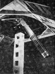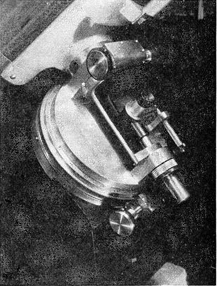 C. B. Moore, Jr., Tech Box 2742, Atlanta, Ga., a chemical engineering student, does this, as shown in Figure 1. "The RFT has a 6" f/3.5 Pyrex mirror," he states, "with full 100 percent correction. The eyepiece is a Ramsden of 1.14" f.l., giving a field of 2.50. Tube and mirror cell are of aluminum. The telescope weighs only 12 pounds, hence it can be carried on the sling (an old rifle sling) without discomfort. In other words, please add my name to the list of satisfied RFT owners." The left-hand side of the illustration shows a typical mounting for the RFT -simply held in the arms like a baby. That, in fact, is one of its strong points- simplicity and lightness. SECOND story of a two-car garage is the spacious observatory (Figure 2) of Charles A. Morrison, 39 Radcliffe Road, Rochester, N. Y. The supporting pier of concrete blocks rises from an earth foundation and passes through the second floor without contact, to prevent transmission of vibration to the telescope. The dome is a frustrum of an octagonal pyramid. The tube is made of wooden strips, beveled and glued. The mounting.(Figure 3), was made from castings purchased from a dealer, and these required a rather complete shop to machine them. The diagonal is an elliptical plate, the second diagonal being the outside surface of a prism. The 8" Pyrex mirror deviates not more than 0.07 wavelength of sodium light from a true paraboloid, Morrison states, and a lunar photograph submitted but not shown here justifies that claim. All three reflecting surfaces are aluminized. The telescope has a Telechron drive. BEGINNERS who are learning the conventional stroke used in grinding and polishing a mirror, and who have noted Ellison's description of the three motions ("A.T.M.," page 77), often inquire whether the mirror should be rotated in the same direction as the worker walking around the barrel, or in the opposite direction. In ordinary work this makes little noticeable difference. The purpose of this second of the three motions will be seen best if we stop to analyze and separate the purposes of all three. First, the "travel to and fro" of the upper disk across the lower has the purpose of wearing away the two differentially, so that the one will become concave by an effect explained in "A.T.M." page 2-that is to say: "the pressure per unit area, and therefore the amount of abrasion, is increased on the central portions of the upper disk and outer portions of the lower one when the upper disk overhangs" during the stroke. Second, if the mirror were not rotated in the hands, it would soon tend to develop into a trough, or cylinder, instead of a sphere. It would have astigmatism. Third, if the worker did not "walk slowly round the barrel" the lower disk would after a time tend to become worn more on one side than on the other, though the mirror itself, because it is rotated, would not be similarly affected. (Thus No. 3 is the least important of the three elements, and this explains why the work may be done at a bench, as in the frontpiece of "A.T.M.," provided the lower disk is turned around once in a blue moon; it also explains why there is no real need, even when a barrel is used, to take a step with each stroke, as some have supposed necessary, and why it is entirely in order instead to stand in one place and work for some time, though in polishing and especially in figuring this should perhaps be taken less literally.) Now it will be evident that, with regard to elements 2 and 3, if the upper disk is rotated in the same direction as the worker it will rotate faster with regard to the lower disk than it will when it is rotated in the opposite direction; the difference between the two being possibly quite marked. Even then it should, however, make little or no appreciable difference, and thus the question is largely academic. In other words, the worker should suit his own whims. But when a machine is used to drive the mirror, some have observed a difference. Years ago Leo J. Scanlon of Pittsburgh observed that rotation in the same direction deepens the mirror's center, while reversing it brings the wear upon the edges, and the late S. H. Sheib of Richmond verified this by speeding up the tool still faster on a machine. He, too, found that at low speed the abrasive collected in the center but traveled to the edge with higher speed. "Apparently," he wrote, "this movement of the abrasive is due to centrifugal force, and hand work is too slow for this effect to be felt." C. G. Wates of Edmonton analyzes the factors thus: First, centrifugal force, and second, relative speed between tool and mirror. ( Centrifugal force increases as the square of velocity and directly as the radius.) On a machine, then, and perhaps in some workers' hands, this phenomenon may be used to control the curve of the mirror. As Wates states it: Relative speed slow-center deepened; relative speed fast, edge deepened. But the beginner is likely to find these latter considerations too subtle to concern himself about. IN SEPTEMBER 1941, in The Sky, Carl Hellman of Washington, D. C., described a peculiar telescope invented by Ludwig Schupmann, and gave basic data. He also gave details of a 4" and a 10" Schupmann which he had made or was making. The Sky added an analysis of the optics of this type of telescope, and in April 1942 gave an account of a Schupmann which had been made, though it had given multiple images. Since the dates of Schupmann's patent was not stated in The Sky, further than to say that it was "some time ago," it looked as though the Schupmann might be reasonably recent. On digging out the patent (Figure 4) its date was seen to be 1899. However, this, at that, was "some time ago!" (What is the elastic limit of a word?) Its age is not, however, a reflection on the Schupmann. In fact, suspecting that other long-forgotten patents may be better appreciated by the present generation of constructors than in earlier times, your scribe hopes some day to find time to e