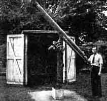 "Bell's book, 'The Telescope,' 'A.T.M.,' and many other books tell what a stellar image may look like and what it should look like. A good image of a star, under a power of 40 or 50 times the telescope aperture in inches, and under good seeing conditions, will be a perfectly round disk, of a size varying inversely as the diameter of the objective according to the Dawes formula, with the disk surrounded by a series of concentric rings of graded intensity. On rare occasions of exceptional seeing, the rings will be needle fine like the web of a spider. "Deviations from this perfect image, assuming the mirror to be well figured and supported by ample leverage, can usually be traced to a pinched or imperfect prism, improper alinement of the optical train, a poor eyepiece, a possible warping of the mirror by changing temperatures, unsteady air imperfect eyesight, or temperature differentials in the telescope tube. ''These defects, their images and their remedies, have been well covered by writers-with the exception of temperature differentials. The latter, otherwise known as 'tube effects,' have been cussed and discussed for years, without any final agreement as to remedy, and, curiously, without exactly spotting the underlying cause. One writer says he likes a metal tube; another says a better image is possible with a lined tube; a third suggests the use of a fan on the tube to mix the tube air into uniformity of temperature, another mentions the superior performance of a wooden tube, particularly after the panels had been removed. "It is not generally known, outside the Weather Service, that various substances or materials exposed in the open air under a clear night attain temperatures different from that of the surrounding atmosphere. Repeated experiments prolonged for months show that thermometers so exposed consistently register lower-than-air temperatures, differences amounting generally to several degrees and occasionally as much as 8 degrees. They further show that the differences persist for hours at a time. In other words, objects exposed to the clear night sky seldom attain the temperature of the air, but differ from it and from one another. "To conceive the process by which two contiguous substances, such as air and metal, can attain and maintain such an anomalous thermal condition for hours together is difficult. It depends, however, principally upon the individual absorption and radiation properties of the substance. "With this background, we are ready to see what happens in a telescope tube. "My first experiment was to use an 8" mirror in a solid metal tube open at the upper end. (Figure 1). The air next to the metal of the tube chilled and drained down the tube, producing differential refraction of light and a poor image. "The second experiment consisted of lining the tube with cork, asbestos, and paper. This left the air in the tube warmer than the outside air. As the chill of evening advanced, a mixing of this warm air with the cooler outside air at the mouth of the tube again produced images distorted to some extent. "The third experiment consisted of boring holes in the cork and metal of the upper part of the tube to afford drainage of the tube air to the outside before it reached the mouth of the tube. This experiment showed that cool air from the outside drifted through the holes, and each wisp of cool air caused a streak across the stellar image. "The fourth experiment was made with the same mirror placed in a skeleton tube built of six angle irons. Theoretically, this tube should have given a splendid image, as the air inside and outside should have had the same temperature. But, alas for science, the more sense I used the less she worked. Air drifting through the tube between the metal work became chilled by the metal, produced a different refractive index, and again left streaks across the image. "The fifth trial was carried out by wrapping the same metal with thick paper (Figure 2) and painting the paper a dead black. This improved the image to some extent but bad images still resulted. In fact, the images some nights with this skeleton tube were quite intolerable, and well-known features of the lunar topography at times were obliterated. The effect of the chill of the metal was proved by placing a heavy cardboard lining within the tube, shutting off the wisps of air chilled by the iron. The moment the cardboard was in place, the images entirely cleared themselves of streaks and became passably good. This experiment was tried over and over until the evidence of differential temperature was proved beyond question. The conclusion was inescapable that the ironwork had an entirely different temperature from that of the air, and that the difference persisted hour after hour. "The final experiment was to use a solid metal tube, line it throughout with -a quarter-inch thickness of cork, and cut a large hole of about 20 square inches in the tube just above the mirror to ventilate and cool the mirror. This gave excellent results, particularly when the hole was covered before observation to steady the inside air. The mirror was a wonderful piece of work and it cut doubles down to the Dawes limit time after time. "By this time my friend, James C. Vaughan (Figure 3) of nearby Petersburg, Va., and I had decided that a larger mirror would be a fine thing to have, particularly for nebulae and clusters. So we prevailed on J. W. Fecker to fix us up with a mirror 12-3/8'' in diameter, which proved to have a magnificent figure. We decided to continue the temperature control experiments with this larger mirror, and built for it a skeleton tube (Figure 4) of duralumin, designed so that it could be converted easily into a closed tube when so desired. Observational results were identical, except that the larger tube, which was 15" or 16" in diameter and had relatively less metal, showed relatively smaller chilling effects. Differential chilling and differential refraction were slightly les