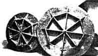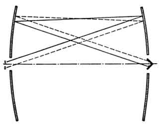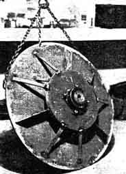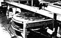 Recently, Dr. John Strong, author of the widely used book "Procedures in Experimental Physics" and now professor of experimental physics at the Johns Hopkins University, asked this department whether some of the advanced amateur telescope makers could make, for non-astronomical research in the infra-red, a matched pair of 36" spherical mirrors of 1-1/4" plate glass (thickness-to-diameter ratio, 1:27), of focal length between 99' and 101' (f/33) and in focal length not more than 6" different from each other, with a circle of confusion (pinhole image) at center curvature not greater than 1/8" diameter in single reflections. These mirrors were to be centrally perforated with holes, mounted in metal cells, and delivered within 90 days. Thereafter, at the Johns Hopkins University, they were to be set in an air-tight tube 100' long, which tube could be partly exhausted and cooled to simulate all atmospheric conditions as high as and including the stratosphere. The set-up is like that shown diagrammatically in Figure 1. (Without the small mirrors to offset it the light beam would inescapably return to the pinhole, no matter how the mirrors were tilted.) This job went to Dave Broadhead, Wellsville, N. Y., whose precision optical background was as follows: Prewar, had made a small objective lens, 6" and an 8" reflecting telescope, and in wartime 3000 roof prisms with better than 98 percent acceptance rate; postwar, two 10" paraboloids, three 14" flats, about 6/7 of a Maksutov telescope (now nearly finished, and so are several other "Maks"). How he went about doing the two 36" mirrors, what methods he used, should interest all fellow amateurs, particularly those who secretly harbor hopes of someday making larger than average mirror, which means nearly everybody. The account is especially valuable because Broadhead does not try to hide or minimize his mistakes. He delivered the mirrors, better than specifications called for and a month sooner than they called for, and these earned Professor Strong's comment and OK to quote: "We are just plain pleased, from the ground up." Offhand, these looked like dead-easy mirrors. Broadhead's cellar shop, 12' x 36', the neatest, brightest, and cleanest we have seen, affords a lathe drill press, metal shaper, grinder, electric welder, gas crucible furnace, and room. Most of these proved to be essential. The less than full precision tolerance did not please but disappointed Broadhead, as it would any true amateur, but there were offsetting headaches and uncertainties, also one certainty- the 90-day delivery limit. Hence, all in all, the job contained enough adventure to interest. Here are some excerpts from Broadhead's progress reports: "Have to build a special machine (Figure 2). Vertical spindle of 2" shafting, on top of which is a round mirror support welded up from 1/2" boiler plate, with radial ribs and braces (Figure 3). Very rigid 24" grinding tool (Figure 4,) faced with glass blocks as in Strong's book page 44, rotated by a 1/8 h.p. motor. Main oscillating arm of two-by-fours driven by a separate 1/3 h.p. motor. Tool on top. I have an ammeter in the driving motor circuit as a guide and warning to any approaching sticking of grinding tool, since a stuck 24" tool wouldn't be funny. "Polisher (Figure 4) 31" diameter, made of 1/2" boiler plate, radial fins welded on its back side. Face has 3/4" pitch layer, 2" facets. Takes 150 pound pull to budge it. Weighs 180 pounds. "For knife-edge test on the 200' course I located image of a 1/64" pinhole with a big piece of cardboard. Found I had hit the 200' radius within specified limits first whack, using a 22" spherometer I made. (Since I didn't have a 22" flat with which to set its zero point I set it at zero on the concave mirror and then on the fitting convex tool. The difference, divided by 2, gives the desired sagitta and that with double accuracy.) But there isn't much to see at the knife-edge. Usually the convection currents make the image look like a three-alarm fire (Figure 6, reproduced at exact size). One night, just before a rain, the air was steady enough for me to see the figure. However, I don't try to use the knife-edge a figuring guide. Instead, I use an 8" test plate and study the interference fringes between it and the mirrors. I use the shape of the circle of confusion merely as a rough indication of astigmatism (Figure 6, left). Incidentally, I may bring on broken arches from lugging these 140-pound mirrors upstairs and outdoors to test them, and neuresthenia from lugging them in again for fear of dropping them. "While grinding the 36" I gave the 8" test plate one go on it for each grade of abrasive, then polished the mirror a bit to see whether the spherometer was giving me the right answers. Then I polished the test plate, trusting to experience to get a sphere. So, actually I got the test plate right by using the spherometer in a roundabout way. Of course, it would be practically impossible to test an 8" test plate at 200' radius; at least much more difficult than the way I took. "At present No. 1 mirror has a maximum variation from spherical of 3/4 wave in any 8" area. No. 2 is ground through 400 Carbo. Had it polishing once but got a bad scratch. Mirror so light (except when you are lugging it around) that it is lifted by the grinding tool by suction when tool is lifted with a chain fall. After a lot of teasing it suddenly lets go, the mirror clumps down 1/2" or so, and the tool seesaws and thumps the mirror. Heart failure every wet." THREE WEEKS later, job finished, Broadhead completes his report, and in what follows he very frankly points out the main mistake he made, and "don't we all?" (If the log book for the 200" mirror is ever published in toto, would you be critical if mistakes that must have been made by the human beings who made it were similarly set forth with candor, or would you expect the makers of that mirror to be different from other humans? If so, why? "Radius of mirror A i
