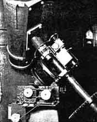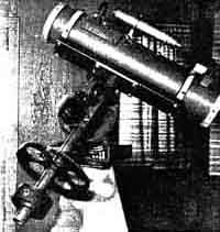 First to furnish a description of a finished Maksutov telescope is G. Camilli, 155 Dawes Ave., Pittsfield, Mass., who enthusiastically reports the "Mak" a success. Some are still having difficulties with the extremely sensitive alinement after nearly finishing their Maks. Camilli writes: "The optical system developed by D. D. Maksutov of the State Optical Institute, Moscow, U.S.S.R., is similar to the Schmidt camera and combines the action of a single meniscus lens with that of concave spherical mirror. The role of the meniscus is identical to that of the correcting plate of the Schmidt camera-the correction of spherical aberration and coma of the spherical mirror without introducing a noticeable chromatism. "The meniscus shuts the tube and makes possible a sealed instrument free from convection currents and a mirror protected from dust and dew; in addition, secondary mirrors may be fastened to the meniscus to reduce their diffraction effects. "The Maksutov system was described first by Maksutov in the Journal of the Optical Society of America, 1944, May, and subsequently by N. J. Schell in Scientific American, 1944, October and December. "The optical system of the Mak completed by the writer is shown in Figure 1. In common with other members of the Mak group, the telescope has an aperture-focal ratio of 1:4. It can be used for visual and photographic purposes. "The meniscus is made of crown glass (nD = 1.5170 ± 0.0010; V = 645 ± 0.5) and was ground, polished, and figured against a tool of the same dimensions. Both surfaces of the meniscus are spherical. The convex surface of the meniscus needs no accurate figuring since the curve is very deep. This is one of the attractive features of the Mak design. Deep curves of this kind can be held truly spherical with reasonable care in the grinding and polishing; especially when it is known that a sphere is aimed for. A light polishing action has been found to be best. "The spherical mirror is made with radius of curvature held as closely as possible to the dimensions shown in Figure 1. The success of this job depends very much upon holding radii very close to those called by the design theory. Unlike our ordinary telescope mirror jobs, where we get a certain radius and then correct to the extent called for by the actual radii obtained, this work is more like that of refractors where close adherence to radii as computed must be had if correct results are to be attained. For the above purpose a spherometer ('A.T.MA.,' 242) is almost a necessity. The meniscus must be optically centered by edge grinding. "In the writer's optical assembly shown in Figure 2, the meniscus and the mirror are rigidly mounted in an aluminum frame. This method affords great simplicity in the mounting and adjustments of all the parts. Thus the cells for the meniscus and the mirror, as well as the spider that supports the diagonal, can be slid up and down on the rods of the frame. The frame will be found very useful during the final phase of the assembly. To obtain the best performance from the Mak system it is imperative that the optical axis of the meniscus and of the mirror coincide. This adjustment is of course done with the spider and the diagonal removed from the assembly. By providing three small bushings which are held against the cell of the meniscus, this and the spider can be removed and returned exactly to the original accurate position without injuring the optical alinement of the parts. "A method of obtaining the alinement of the two optical axes (mirror and meniscus) is shown in Figure 3. Using a wax-pencil, a cross is marked on the convex (back) surface of the meniscus. Likewise a small round dot is marked on the exact center of the mirror. A light held slightly on side of the operator illuminates the front of the meniscus. Looking at the system from the meniscus and keeping his right eye in line with the center of the cross and the dot on the mirror, the operator will see also the reflection of the cross on the surface of the mirror. By careful adjustment of the mirror, the reflection of the cross can be made to coincide with both the original cross and the dot of the mirror. In making this adjustment it is of course assumed that the meniscus is squared on the mechanical axis of the frame. "After this adjustment has been completed, the spider is returned to place and the assembly is inserted in a protecting tube as shown in Figure 4. The adjustment of the diagonal with respect to the mirror is done in accordance with one of the schemes described in 'A.TMA.,' 272. "The performance of the Mak well repays all the work which the writer has put into it-the definition is much superior to that obtained by a simple reflector. The images of stars are very small and sharp, free from coma and color. The writer expects to run a series of comparative tests between the Mak and an f/17, 6-1/2" reflector, the mirror of which is made of fused quartz, mounted in tandem with the Mak. "The mounting for this telescope (Figures 4 and 5) is similar to Everest's 'Old Town Pump' described in 'A.T.M.A.,' 514. An Alnico motor (75 r.p.m ), through an additional gear-reduction, drives the final worm gear of the telescope (Figure 5). The same worm gear can be driven at very high speed by a capacitor type reversible motor Ordinarily the Alnico motor drives the right ascension shaft at sidereal time. When it is necessary to advance or retard on the normal speed, a push button arrangement brings the capacitor motor into operation. After the correction has been made the A1nico motor immediately goes back into service without the mediation of any mechanical clutch." CONFUSION exists in some minds regarding the type of Pyrex Brand glass in standard molded telescope blanks. Are these regular products or some "off" variety? Such a rumor probably started from the fact that Corning developed for the 200" mirror a special glass having only two thirds the expansion co-efficient of the standard Pyr