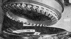 Diamond: During the war greatly improved techniques for using diamond were developed. Previously, rotary diamond saws were made by rolling or pressing diamond chips into slots or nicks in the edge of a copper disk. Such saws cut well until they snagged a sharp edge and the diamonds were dislodged and lost. Further, the soft copper blade was so flexible that it was difficult to make an oblique cut and the saw wandered off on a crooked path. Most postwar saws are made of steel with the diamonds brazed on, so that it is practically impossible to remove them. Such saws last almost indefinitely. A 10" blade costs about $6. They will cut glass, quartz, rocks, firebrick, hardened steel or any hard substance. In a recent demonstration with portable equipment, an 8" thick concrete highway was thus sawed in two in 30 minutes at much less cost than the job could have been done with air hammers. Another development of the diamond saw is the hole saw or biscuit cutter used for making large holes in glass and other hard materials. Such hole cutters are now available so cheaply that it hardly pays to make one. They cut faster, cooler and with less danger 9 of chipping than the usual cutter charged with loose abrasives. When they are properly operated the hole produced has a beautiful finish with only extremely fine chips on the exit side, and the removed plug looks as if it had been turned and fine ground. A recent development is a diamond boring tool made by Felkin Tool Company, Torrance, Calif., which forces lubricant (usually water) under its cutting edge through a stationary water connection on its rotating shank. Such a saw cuts ten times as fast as the familiar diamond hole saw and I have seen an operator cut sixty 1" diameter holes in thick glass in less than two hours. Besides saws and hole saws, diamond milling cutters and lathe tools are available. The former are metal cylinders with the surface covered with brazed-on diamond chips. They can be used either on a milling machine or a surface grinder. It is amazing to see such a cutter smoothing off the top of a line of glass prism pressings on power feed at the rate of several feet a minute. Diamond lathe tools can be used to turn glass disks round or to shape lenses. The deep curve of a Schmidt mirror, for example, can be quickly cut out with such a tool. In fact, if diamond cutters are used, it is possible to work glass very much like metal and on the same machine tools. Probably the most advanced development of this kind is the lens generator which makes precision lenses from glass blanks without the use of laps or loose abrasive. The blank is clamped in a holder and a diamond cutter adjusted by a graduated wheel runs over the surface at the desired curvature. The resulting lens is of good quality and even has a fair polish. A simple adjustment of the dial allows a different radius to be cut. Diamond drills for small holes consist of a single properly shaped diamond fastened to the end of a steel shaft. Such drills are mass produced in the size, about 0.05" diameter, that is used for drilling mounting holes in spectacle lenses, and can be made to order in other sizes. The selection of the stone, with the mounting and shaping of the point, are a job for the expert and may be considered reasonable at $35 for the size described. Small holes can be drilled in hard materials, using a vibrating hardened steel wire and diamond dust, by a process that is exactly the same as star drilling in concrete. The National Bureau of Standards, Washington, D.C., has recently developed some very superior chemical and electrical methods for drilling extremely small holes in diamonds which would probably be applicable to other hard materials also. Diamond is too expensive to use loose like silicon carbide and emery. Instead, a tool or lap is made and charged with diamond powder or chips. Lapidaries, in smoothing and polishing gems, spread a small amount of diamond dust in oil vehicle on a smooth soft iron or copper lap; then, with the lap rotating at low speed, they press down on the surface with a small hardened roller, which forces the abrasive into the soft metal. The cutting action of such a charged lap is a combination of grinding and polishing. It is like grinding' in that relatively large particles of abrasive are used and consequently there is rapid removal of material, and it is like polishing, in that the abrasive particles are fixed in a comparatively soft lap and are not free to roll. The result is that a diamond lap cuts rapidly but leaves a semipolished surface covered with scratches caused by the larger particles. The spaces between the scratches are pretty well polished and this is very convenient in working glass, as the surface always has a good enough finish to give a reflection for test purposes. Next month, more about diamond abrasives; how to make diamond laps; data on titanium oxide; and Barnesite, its composition, how it should be applied, where it may be obtained. Also garnet fines as a finishing "emery."