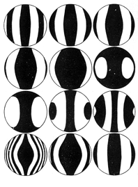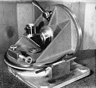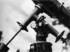 An amateur telescope maker, E. S. Ensign of the Ensign Foundry Co., 2100 Hendon St., Toledo, Ohio, has devised another kind of extension "rod," an electrical one. On the mounting of his telescope-a four-inch refractor made by himself-is a tiny electric motor (145 r.p.m ). In the observer's hand is a spring switch on the end of a flexible cord. Whenever the observer presses the switch the motor sets and keeps the telescope in motion until he releases it. Actually, there are two switches. These are soldered together as shown in Russell Porter's drawing made from the original. The over-all circuit is shown in the diagram. There are eight cells on either side of a neutral wire. Thus the motor can be reversed. Better still, the plunger-type radio switches used combine rheostats. This permits micro control of the telescope. It all looks fine in the illustrations, but it proved to have one "bug." Ensign writes, "I have found that no matter how tightly I set up the tripod screws the telescope shakes when the motor is started and stopped." If a prize were offered for a torsion balance the familiar structure called the tripod might win it. Vertically a tripod is as stiff as a post. Laterally it is stable in any situation short of a hurricane. Due, however, to an inherent diagonal weakness it is rotationally unstable. If a long object, say a telescope, having a large moment of inertia and a slow period of oscillation, is placed on top of it, this instability is accentuated. Add a breeze and your prize is won. Despite this, tripods have good points-at least show us some thing better. One of these points, however, is not their use as engine beds or motor pillows. Ensign is substituting an iron pedestal for the tripod and retaining the electrical feature. One experimenter who reads this department recently remarked that the lot of the experimenter would be a happier one if other experimenters would similarly record not alone their successes but their mistakes. This department likes to publish valuable mistakes. Ensign's refractor mounting was cast in aluminum. The polar axis has at top and bottom, respectively, 1 1/4 inch and 5/8-inch double-race ball bearings. The declination axis shaft turns in a plain bearing. SINCE Ensign runs a foundry he was well situated to make a Springfield mounting more closely similar to Porter's revised Springfield described in Amateur Telescope Making-Advanced than any this department has seen. Perhaps because the patterns look formidable the revised Porter Springfield has seldom been tackled. After examining the original of the photograph reproduced here, Porter remarked, "A fine-looking job." This more than casual remark-for Porter doesn't effuse-carried more than common weight to one who has heard him loudly say nothing when shown photographs of compromise Springfield jobs. Ensign writes: "The mounting was made from Porter's design in ATMA. The main casting is aluminum with a ground steel insert to take the axis tube. The clutch plate is brass and has a stud staked to it which comes through the slot in the casting near the top. The stud is fitted with a handle and pinicer gear running on a segment of curved rack thereby giving a sort of vernier in declination. This was done to take the place of the worm-and-gear method, as in the original design. The worm gear for the hour circle was made on a 10-inch Logan lathe. I cut it with a 5/8-inch tap and it came out well except that the teeth don't match very well on the complete revolution. The base casting is also aluminum, but I should have used iron, as aluminum is not heavy enough. The mounting is to be used with an 8 inch mirror with 10-inch tube." Smelling a possible chance to make this rare Porter Springfield available to amateurs, this department sounded out Ensign about castings for others. Reply: "I have the patterns but we do not pour aluminum. I would have to take it to another foundry. If some now and then would like castings out of iron I could probably accommodate them, but the prices might seem steep " Ensign specializes in a low carbon iron with nickel and chromium called Tensloy. In the month after the above reply was received more inquiries about Springfield castings reached this department than during the previous three years. Do you believe in telepathy? THE FOURTH illustration shows a trick Springfield telescope ("Very ingenious."-Porter) proposed by Daniel Langpoop of Los Angeles. The diagonal mirror is on a pivoted support and is aluminized on both faces. In A the observer is guiding a photographic plate. In B two persons are observing simultaneously. The smaller telescope is also a finder, the best aspect of this rather stunty proposal. ADVANCED amateur telescope mirror makers examine and study in the minutest detail the shapes and outlines of the Foucault shadows on mirrors and thus come to know their finer subtleties, many of which are not even perceived by the tyro. The same painstaking study has not yet been given the map of the bands in the useful Ronchi test. George P. Arnold of State College, Pa., and Joseph Vrabel of Boalsburg, Pa., argued heftily about the curvature seen on the Ronchi bands in testing a short-focus mirror they were making. Should these bands neck in as much as they did at the top, or should they have the same curvature everywhere along their length? This started Arnold, a graduate student in physics, on a hunt for a general formula by means of which the exact shape of the bands for a mirror of given specifications may be worked out in advance for the particular Ronchi grating used. He found one which he says will do the trick with fewer pains than may at first appear. "0f interest," he comments, "is the fact that one formula can give so many shapes." On its use he has prepared what follows: The correct appearance of the bands for any point inside or outside focus may be plotted. The lines are drawn in for the separations between the light and dark shadows thrown by each wire 