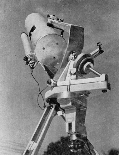 The 48-inch Schmidt is now beginning its first work as a systematic scout for the 200-inch. During the next four years it will photograph, area by adjacent area, in both red light and blue, the whole of the sky that is visible from its latitude- three fourths of the entire area of the heavens. The result will be an album of a thousand pairs of photographic prints, costing $2,000 a copy, which will be used by other observatories. As this program swings along, at the rate of one exposure an hour when the skies are clear, new discoveries almost ; surely will be made as by-products: data on variable stars, on novae, on clusters, and unexpected finds: a new asteroid has been found already. What, then, is the principle of the Schmidt, and where did it get its name? Bernhard Schmidt, the son of Swedish and German parents, was born in 1879 on Nargen, an Estonian island between Estonia and Finland. After studying optics in Sweden he moved to the vicinity of Jena in Germany, where he lived a carefree life for 25 years, occasionally making telescope mirrors to sell to amateur and professional astronomers. He ground them not only by hand but with only one hand; he had lost his right hand when he was a boy. He never married. Dr. Paul C. Hodges, who has investigated his life, says that Schmidt's wants were confined to simple lodgings. food, cigars, cognac and freedom from regimentation. He would undertake no more mirror making than would barely satisfy these few needs, and refused positions with the large optical manufacturers. In 1926, however, he was induced by astronomers of the Hamburg Observatory in Bergedorf to join the staff as a "voluntary colleague," an arrangement that gave him freedom to roam the woods and talk to himself. In regimented Germany this loose kind of arrangement might have cost the director of the Observatory his job but, as Dr. Hodges states, "instead it gave the world the Schmidt camera." Schmidt announced its discovery in 1932. He died in 1985 but not before the significance of the basic principle he originated had been recognized by science. Even greater realization of its importance has come since his death. This is the problem that Schmidt solved: If only a spherical mirror could be used in a reflecting telescope, the telescope would be free from the blurring aberration called coma. Unfortunately a spherical mirror suffers from another cause of blurring called spherical aberration. To remove this spherical aberration the sphere is "corrected," that is, slightly deepened toward the center to make it a paraboloid. This correction in turn introduces coma, which, for critical uses such as star photography, blurs all images not in the center of the field. Thus in picking up one bundle the second bundle is dropped. Bernhard Schmidt discovered a way to carry both bundles. He analyzed the problem thus: A correction equivalent to a paraboloid could be made on a separate plate of glass in contact with the original spherical mirror. From this, however, there would be no gain, as many others had realized after having the same analytical thought. Schmidt's stroke of genius was to think one more thought-and, of course, the right one. He removed the plate from contact with the spherical mirror and shifted it several feet to the center of curvature of the sphere. Here both kinds of aberration were eliminated at once, making possible a sharp focus over a broad area on the photographic plate. By easy hindsight, most optical workers have noted how simple the Schmidt principle is, and have kicked themselves for not discovering it first. Cameras like the 200-inch that have paraboloidal mirrors can photograph, blur-free, areas of the sky only about one sixth of a degree in angular diameter, represented approximately by holding a pin at arm's length with its head facing the eye. The 48-inch Schmidt at Palomar can photograph areas six degrees in angular diameter, represented by holding three fingers at arm's length against the sky. The ratio between the two areas is about one to 900. This gain was Schmidt's great gift to astronomy. The six-degree angular diameter of the area photographed by the 48-inch Schmidt is almost the same as that achieved by a Schmidt camera built by the amateur astronomer John F. Gregory of t3825 Bainbridge Road, Cleveland Heights 18, Ohio. This does not mean that Gregory's 5-inch Schmidt, shown in Figure 3, equals the great Palomar Schmidt in all respects. It has very much less power to penetrate distant space. In Figure 1 is a photograph of the Double Cluster in Perseus and surrounding stars made by Gregory's Schmidt. The original of this photograph, a little round film only 1 5/8 inches in diameter, was shown, together with photographs of the Gregory instrument, to Dr. Henry Paul of Norwich, N. Y., an advanced amateur authority on the Schmidt. The Perseus Cluster photograph evoked praises not often given to or justified by similar attempts: "Very good in many many respects." The images of individual stars are small and round, showing no aberrations, clear out to the edges of the film. GREGORY is a senior student in mechanical engineering at the Case Institute of Technology in Cleveland. Ten years ago, at the age of 12, he attended a lecture by J. J. Nassau, head of the department of astronomy at Case. A year later, with the help of the book Amateur Telescope Making, he had completed a beginner's reflecting telescope. Wisely, he waited to acquire more years and experience before tackling a Schmidt. The lightweight tripod shown in the illustration is temporary, being found too shaky on breezy nights. Bolted to the top of the tripod is a block of oak. To this the electric driving motor and the driving-speed reduction gearbox are bolted below; the mounting and tube are bolted above. The main casting of the mounting, as well as the fork and the gearbox, are of aluminum. Gregory "patterned," cast and machined them as a special project while taking required courses in these 