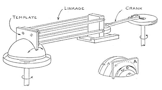 "The reason why this gadget works this way lies in the equation of the paraboloid and the fact that every section cut from a paraboloid, like a, b, c, d, e, is a parabola and all are identical. "If you slide the spherical tool A down the side of a sphere it will touch only at B and therefore will begin wearing faster at that point than anywhere else along its edge. Conversely, the sphere will begin to wear away too. It's easy to show just cut a piece of cardboard so it fits over the center of a tennis, croquet or billiard ball and slide it down, keeping it always vertical." Later Porter wrote: "That convex paraboloid is to be used as a mold from which to cast concave plastic mirrors to be used for some kind of infra-red research and the experiment consumed 111 hours of my time. After Anderson [maker of the 200-inch mirror] tested it and said it was 20 times better than the tolerance laid down I felt greatly elated, 1t for he is not in the habit of exaggerating." IDEALLY, when the amateur's telescope is not in use it should remain out of doors under an observatory dome, a runoff roof or at least a tarpaulin. But circumstances force what is probably a majority to keep their telescopes indoors and lug them outside for each use. Since even a six-inch reflector may weigh 100 pounds or more, this often results either in diminishing use or in such a reduction in weight that the instrument is shaky. Edwin F. Bailey of the Astronomy Section of the Franklin Institute in Philadelphia hit on a happy solution of this dilemma. He used as his telescope base a 10-gallon expansion tank from a hotwater heating system. With the telescope unscrewed, this tank may easily be carried to the back-yard site. There it is filled with 88.8 pounds of water from the garden hose, which makes it quite heavy enough. After the observing period the water is let out of the tank. Tanks of this kind measure 11 by 18 inches and are tapped at the top for a 3/4-inch pipe. In place of this tapping Bailey welded a two-inch pipe flange, and inserted a two-inch-length nipple to serve as the telescope-post attachment. RECENTLY a newly organized amateur astronomical society in Australia asked this department for guidance in planning a workshop that would encourage its members to make their own telescopes. They asked, "What is required in the way of working space, machine tools and, in short, the whole setup?" Copies of their letter were transmitted by this department to several American amateur astronomical groups, with the suggestion that copies of the replies be made available in these pages to others who may be planning similar organizations. From replies that were made available the following excerpts are extracted. From Leo N. Schoenig, shop superintendent of the Amateur Astronomical Association, Pittsburgh, Pa.: "Our set-up at Buhl Planetarium consists of a rectangular space 24 by 33 feet in dimensions, or an area of 726 square feet. This is divided into a general workshop 16 by 24 feet, rough- and fine-grinding and polishing rooms each 9 by 11 feet, and a testing tunnel 6 by 24 feet. The space was arranged for our needs when the PIanetarium building was erected in 1939. "At the start we held a tool shower, and the members responded well. Thus we have in the general workshop a metal lathe, drill press, bench grinder, vises, an anvil, a gas furnace for making castings, patterns and scrap metal, a large layout table for general construction layouts, 10 lockers for individual members, and numerous hand tools. In the rough-grinding room: eight spindles for grinding, a workbench, electric plate and additional lockers. In the fine-grinding room: a grinding machine, four polishing spindles and a large bench for mirror storage. In the testing room, or tunnel: a table for supporting mirrors and a movable stand for the testing equipment." Schoenig confirms the assumption that the true purpose of the anvil he cites is as a substitute for the famous hydrant mentioned in Amateur Telescope Making, page 287, with its use extended to other mirrors. From H. L. Freeman, executive secretary of the Los Angeles Astronomical Society: "We have about 7S0 square feet of shop area in the Griffith Observatory, divided into a large general shop, a small polishing room, a small office and a hall for testing. Telescope-making activities are carried out in the main room, which contains a quick-change, nine-inch swing, 54-inch bed lathe and its accessories; two drill presses, of which one is a high-speed precision type; a power-driven vertical spindle carrying a horizontal steel lapping wheel, for surface grinding glass to rough plane surfaces; a power-driven, two-spindle grinding and polishing machine, with pans for submerged polishing, capable of working 12-inch mirrors, three pedestals for hand grinding; a heavy workbench with bench grinder; a sink, a two-burner gas plate, a compressed air outlet for spray painting, a mercury vapor lamp and flats for testing, storage cabinets and hand tools. "In the polishing room is another polishing machine, a sink with hot and cold water, and a gas plate for melting pitch. No activities not connected with polishing are permitted in this room. Entry is forbidden to anyone coming from the grinding shop, and entry by others is discouraged.
