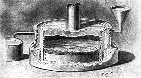 THERE IS NO essential difference between cookie-cutting the circumference of a disk and perforating it centrally for a Cassegrainian. In fact, the perforation in one big disk is sometimes as large as the outside diameter of anther. To supplement the preceding notes on cookie-cutters, A. H. Johns of Larchmont, N. Y., who was known to be making two 16-inch Cassegrainian mirrors for others as a part of his avocation, was invited to describe his methods of trepanning, using a length of tubing as the trepan. He writes: "I had previously drilled 1-inch and 2-inch perforations in mirrors, and had no trouble when I, came to perforate the two16-inch disks 3 inches thick with holes 4 inches in diameter. These disks weigh about 50 pounds, which permitted dispensing with holding devices other than several thicknesses of wet newspaper between the disks and the bench on which they rested. These gave an excellent grip. "The steel drilling tube had walls 1/8-inch thick. It must be checked to assure that the walls are true, since a bulge or a taper will spell disaster. "I did not pitch or wax a cover glass to the face of the disk, as is sometimes done to avoid splintering the glass at the entrance point. If the drill is held sufficiently rigid and the whole system is properly squared up, there will be little likelihood of such splintering. This rigidity also safeguards against the drill running down at an angle. "Because my disks were only rough-ground at the perforating stage, and also because the hole to be cut was fairly large, I used No. 80 Carbo. This left a few pits around the edge of the perforation, but these were later eliminated in grinding the mirror curve. "To prevent gunk from splashing, a fence of heavy paper was wrapped around the edge of the disk. The drill was run at about 200 revolutions per minute, but there is nothing compulsory about this. For a 2-inch hole I once ran at 540 revolutions per minute, according to my log records. Plenty of Carbo and water were worked into the crevice and the grinding noise was maintained at maximum. The drill was lifted frequently, while running, to bring up the gunk and permit clean fresh Carbo to reach the bottom of the cut. When it began to pile up, this gunk was sponged away. It is not necessary to flood the surface with water. "I ran the drill to within 1/4-inch of the back, filled the cut with wax (to be left while the mirror is processed) and inverted the disk to complete it by drilling from the back. If at this point the planes of the inverted disk-faces are not made parallel with their original planes, there will be difficulty in making the cuts meet. "Splintering occurs only where the drill emerges and not at the entrance face. Were I planning to drill straight through the disk in a single operation, and were the splintered back-face objectionable, I would first pitch or wax a cover glass over the exit area. "If strains are already present in the glass, drilling after polishing will warp the figure."