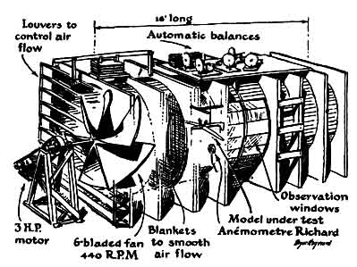 One does not need to look far for examples of low-speed aerodynamics. It enters into the physics of space-heating and of air-conditioning and ventilating systems generally. The design of several meteorological instruments involves the micro-ounce forces set up by movable surfaces that comprise their sensing elements. All of these mechanisms have been fashioned largely by cut-and-try methods rather than on scientific principles. Perhaps the professional neglect of this basic science can be explained in terms of dollars and cents: it may be felt that the small results would not be worth the time spent. But this explanation can scarcely apply to amateurs. Time is the amateur's greatest stock in trade. Many boys (aged 8 to 80 spend endless hours building and flying kites. Still, with few exceptions the kites they fly are aerodynamically no improvement over those flown 3,000 years ago. Even the Navy continues to use the classical and grossly inefficient box kite to haul aloft the radio antennas of its emergency life rafts. It is true that some of these are fancy affairs with aluminum tubing and fabric substituted for sticks and paper. But aerodynamically the Navy's 1953 box kites are a thousand years old. Even more surprising is the lack of active interest in low-speed aerodynamics by the multimillion-dollar model-airplane industry. A significant percentage of its estimated 100,000 enthusiasts are gifted laymen, professional pilots and others who hold degrees in science and engineering. Each year these energetic hobbyists build and fly tens of thousands of model aircraft. Yet the miniature wings they construct are inappropriately patterned on large-scale airfoils designed for speeds above 50 miles per hour or on models put together by cut-and-try methods. Some of the curious effects caused by the motion of air can be demonstrated with simple household objects. Suspend two apples by strings, like a pair of pendulums, and hold them close together. When you blow between them they will move toward each other, instead of flying apart as might be expected. Take a piece of paper an inch or so square, stick a pin through it and drop it on the end of a spool with the pin in the spool opening. You will find it difficult to dislodge the paper by blowing through the other end of the spool. Set an electric fan on the floor and let its air stream blow toward the ceiling. If you drop an inflated rubber balloon into the air stream, it will not be blown away but will stay in the air stream and hover over the fan, even when the fan is tilted at a considerable angle. All these effects are accounted for by a common property of moving air-one which explains why airplanes fly and how it is possible for a good baseball pitcher to throw a slight curve. Less pressure is exerted on a surface by air in motion than by air at rest. Airplane wings are shaped so that air flows faster over the upper surface than the lower one; this reduces the pressure above the wing and produces a lifting force. The effect was first described in precise terms by Daniel Bernoulli, of the celebrated family of Swiss mathematicians, in 1737. Another interesting property of air is its stickiness. It clings to objects, "wets" them and thus tends to retard their motion through it. In general these drag forces, as well as those of lift, increase with increasing velocity. At speeds from about 50 to 400 miles per hour, the thin film of air that clings to the surface influences the forces in significant ways. At higher speeds the forces change: at the speed of sound, for example, moving objects literally rip the air apart, compressing that in front and creating a vacuum in the wake. The professionals today are largely occupied by the effects that lie beyond the so-called sonic barrier. But no one appears to be in the least concerned with the equally interesting effects in what may be called the region of the gentle breeze. Only once, at least during recent years, has anyone ventured into that region. Just before the beginning of World War II a group of amateurs in Boston, headed by Captain W. C. Brown of the Army Air Force, decided to explore the behavior of aerodynamic forces set up by velocities under 10 feet per second. Several members of the group were majoring in aerodynamics at the Massachusetts Institute of Technology. The group spent many months building a precision wind tunnel for low-speed investigations. Unfortunately the tunnel was in operation for only a brief period before the war started, and the group completed only two studies. They plotted the characteristics of a family of airfoils worked out mathematically for indoor airplane models, and investigated the effect of streamlining the structural elements associated with these profiles. After Pearl Harbor most of the group went into military aviation, and that ended the project. But the few prized scraps of information that emerged from it continue after more than a decade to be published all over the world. Captain Brown, who is now with the U. S. Office of Education, writes of the historic Boston tunnel as follows: "One of the failures of the past 35 years of aviation has been the inability of man to conquer the low-speed field. The slow autogiro and helicopter represent two of the few successful innovations in conventional design since aviation became a fact. Who can predict what other discoveries in this field may revolutionize present design? "Before the war several attempts were made with various types of equipment to gather data in the low-speed aeronautical field. One notable project was a -tunnel of about three feet diameter with the air stream driven by an ordinary fan. The famous B-7 airfoil came out of this work. Another project, more ambitious, was a tunnel in the Midwest which produced some interesting tests, although numerous corrections had to be made. But the Boston instrument continues to hold the record as the largest and most accurate low-speed wind tunnel ever cons