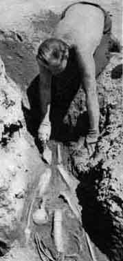Dr. Kazimiroff has carefully catalogued his Indian collection and kept a running account that relates it scientifically to the prehistory of the American Indian. Some day he plans to present the results of all this work to the Heye Museum. Judging by the rate at which the collection is growing, the Museum may be pressed for room in which to house it unless Dr. Kazimiroff makes his presentation soon. This summer he hopes to reap several hundred new items from three promising sites on Manhattan Island where building construction is scheduled to get under way. "I expect to keep on digging for another 30 years at least," he says. "We have barely scratched the surface. We have a long way to go before we can claim we know very much about the way the Indian lived prior to the coming of the paleface." Dr. Kazimiroff made his start in archaeology during the summer of 1919. His father was a nature student and the family spent a lot of time in New York City parks. On one of these nature walks young Ted's attention was caught by a sharp bit of flint in the shape of a triangle-a typical Iroquois arrow point. As Ted bent over to pick it up, the senior Kazimiroff gave his son the first rule of the good archaeologist: Never disturb an artifact until you have carefully noted its location and surroundings. "It was not many years before I learned the value of that rule from firsthand experience," he says. "Good records pay off. Not only do they lead you to other finds, but like the individual pieces of a growing jigsaw puzzle, each specimen helps to spell out the story- in my case the story of what men and women were doing on Broadway centuries before skyscrapers displaced the forests. It is in these stories that I find the fascination of amateur archaeology. Unless an object can be related to the lives of the people who made and used it, you have added nothing to your collection but a valueless souvenir. "Archaeology has another strong appeal, too. Like psychoanalysis and other disciplines that center on people, archaeology is both an art and a science. Hence its study never becomes routine or dull. I sometimes get the discouraging notion that the perfect archaeologist would have to learn everything about everything, plus acquiring all the tricks of a master diplomat. Around New York City, at least, a gift for diplomacy and the ability to act fast are almost as vital to an amateur archaeologist's success as his trowel and notebook. "An experience involving one of my most important finds illustrates this point. Back in 1938 when preparations were under way for the New York World's Fair, a group of promoters decided to build a trailer parking lot in the Ferris Point section of the Bronx, near the north end of the Bronx-Whitestone Bridge. Their plans called for excavating a large site adjoining residences in the vicinity. While driving out that way early one afternoon I noticed that the soil had been cut from three sides of a house so that it was left standing on a pillar of earth about six feet high. What attracted me chiefly was a burned patch in the earth midway up one face of the pillar-a patch with clean, dark edges about 18 inches across. That, I said to myself, must be the remains of an Indian fire pit. I knew the property owner could not permit the pillar to remain exposed for long because erosion would set in. The foundation needed the support of a concrete wall. Hence if the fire pit was to be investigated it was now or never. Experience had taught me that in New York City it pays to dig first and ask for permission later. "So I pulled my car over to the site and went to work. I had scarcely touched the burned patch before an assortment of shells and fragments of pottery began to tumble out. The nature of the material convinced me that here was the site of an Algonquin burial ground, or at least of a village that had been inhabited for a long time. "The work had been going nicely for about half an hour when suddenly the property owner appeared from around the corner, waving his arms and demanding to know precisely what I thought I was doing to his house. It seemed that he was not at all happy about the trailer project, despite the fact that he had already collected substantial damages from the contractors. My digging was just about the last straw. I talked fast, explained who I was, where I came from, the importance of the find to science and wound up with a strong appeal to his better nature. Finally he drove off to his job grumbling that I'd better have that hole filled in by the time he returned. "I went on digging, and the farther I went, the more I found. When the sun went down, I hooked an extension light to the battery of my car and kept digging. It must have been about midnight when the owner returned. You should have heard him! By that time I had burrowed in so far that only my heels were showing. I scrambled out of the hole and tried to pacify him but it was no use. He telephoned the police. While he was talking I piled my notes and specimens into the car and commenced shoveling the dirt back into the hole. When I heard the approach of a siren, I lit out for home. "Field archaeology requires the development of intuitive gifts much like those of Sherlock Holmes. One of the most important of these is 'differential perception'-the ability to glance at a stretch of terrain and single out, almost subconsciously, any object or surface feature that departs from the natural state. Perhaps you spot the thin edge of a shell protruding from a bare patch in the grass on the summit of a hill. Mollusks do not grow on hilltops, so you investigate Or you may be at the beach and see a peculiarly roughened pebble which stands out in contrast with the myriad that have been polished by the sand. You look closely and discover that it is covered with peck marks-a proof of aboriginal handiwork. "With practice, many features of the landscape which previously escaped notice will begin to catch your attention- a s
