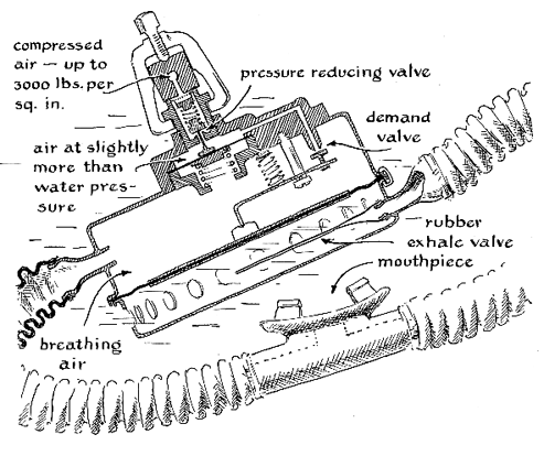"For as long as I can remember," he says, "our family has summered on the beach. We all learned to swim early and our big sport was body-surfing. During late spring and early fall, when the breakers run high, you swim out 200 yards or so, catch a big one and skim back on your belly like a surfboard. We always dreaded July and August because then the Atlantic settled down like a millpond and that ended the thrills. At least that was the way it was until five years ago. "Then one day in mid-July a gadget in a sporting goods store caught my eye. It was a swimming mask, an oval of rubber molded around a disk of shatterproof glass. I bought one on impulse. That week end, as usual for the season, my companions on the beach consisted of a dozen or so bass fishermen idly casting their lines into the surf and pulling them back empty, and a group of elderly ladies who enjoyed bobbing up and down close to the lifelines. The fishermen's persistence always puzzled me. Everyone knew the beach had been fished out for years. "I fitted the mask over my eyes and nose and waded out beyond the ladies. I kicked off and dipped below the surface. The spectacle left me stunned. It was like floating in air. The sandy bottom curved away steeply into a cold, eerie blue. But within 100 yards the water was alive with clouds of bass-big ones by the hundreds. Cautiously I drifted down among them. Instead of darting away, the bass seemed to accept me as one of their own, lazily staying just beyond reach. Some weighing up to 25 pounds were wandering in and out among the ladies. "Something had to be done about those fish. I rushed to our cottage and came back with a bamboo pole sharpened to a point. As things turned out, the bass were quite safe. My excited thrusts simply threw me off balance and robbed the spear of its force. Finally I gave up. But why weren't the fishermen hooking anything? I dove toward their lines to find out. At that moment, I suppose, I became seriously interested in the ways of things that live in the sea. The next day I bought a pair of rubber swim fins and I have been skin diving ever since. "A few hours under water disclosed the reason for the fishermen's plight. The bass simply recognized the tackle as a clumsy fraud and kept their distance. They quickly learned to steer clear of men-fish, too. With a spear gun powered by rubber bands, bought that first season, I took several hundred pounds of fish. A half-dozen other enthusiasts also learned spear fishing. But by the end of the summer, the bass had learned to circle casually just beyond our range. In contrast the small, unhunted species came as close as ever. "That season I also learned of some important advances in the art of skin diving. The snorkel had appeared some years before. This is a short length of plastic tubing which enables you to breathe while doing a dead-man float. One end is fitted with a mouthpiece which is gripped between the teeth; the other has a float valve which rides on the surface and closes automatically when submerged. The swimmer breathes through his mouth under water and exhales through a rubber flap valve in the mouthpiece. A snorkel enables the most inexperienced swimmer to float for hours without lifting his face from the water. Whenever you see something interesting below, you simply hold your breath, do a jackknife flip and down you go. Ordinary swimmers can dive to 30 feet and experts go down beyond 100. "I also learned with disappointment that our waters off New Jersey are rarely as clear, or as densely populated with striped bass, as on that first day. The sea has a climate of its own and often adverse conditions cut visibility to a foot or less, especially near harbors or the mouths of rivers heavy with silt. That is why the clear waters of California and the Mediterranean make those localities world centers of skin diving. As in many U. S. lakes, good visibility is characteristic there throughout the year." Good underwater seeing means a lot to Meltzoff, who is first of all an artist. Although the sea anemones and their relatives which coat the floor of tropical seas in brilliant colors do not thrive off the Jersey coast, he finds an endless challenge in the more subdued and less familiar forms in northern waters. At first he was content to make short dives for a hurried examination of the bottom, but such glimpses were not very satisfying. Moreover, Meltzoff wanted to try painting under water. For this he needed a means of staying below for longer periods, but conventional diving gear was out of the question. A deep-sea diving suit with air pump, tender and accessories costs thousands of dollars and gives the diver little freedom of action. He is tethered to his pump by an air hose. His shoes weigh 40 pounds or more. To move, he must adjust his buoyancy by means of a manually operated valve controlling the pressure in his suit. A slight error may cripple him for life. Hence, except for a few daring enthusiasts such as Dr. Jerome Schweitzer, the dentist explorer and diver of New York City, not many amateurs were attracted to oceanography until a solution was found for the problem of entering the hydrosphere safely and inexpensively for extended periods. This happened in 1943, though the U. S. did not learn of it until after the war. Captain Jacques-Yves Cousteau tells the whole thrilling story in a current best-seller, The Silent World. A gunnery officer of the scuttled French Navy, Cousteau was waiting out the Italian occupation by skin diving off the Riviera. There he and two swimming companions, Frederic Dumas and Philippe Tailliez, got an idea for a self-contained compressed-air lung. He submitted it to Emile Gagnan, an expert on industrial gas equipment, and together they worked out the practical details. The result was the aqualung, a device that has revolutionized diving and enabled comparative laymen to penetrate a vast new frontier as primeval as the land surface of 20,000 years ago. When it is 
