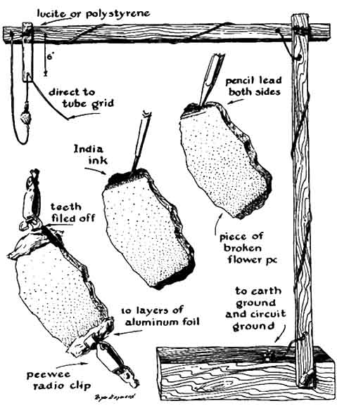 The invention stemmed from Lichtgarn's application to the U. S. Weather Bureau some years ago for a job in weather research. He was told that preference was given to applicants with formal training in meteorology. In lieu of the training he made up his mind to impress the prospective employer with his talent for invention. A single visit to a weather station showed him that the field was wide open. "Meteorologists," says Lichtgarn, "live with instruments handed down in principle from the 1700s. Many observers take pride in pointing to 'triple recorders' last manufactured at the end of the 19th century. The field of weather instruments is an inventor's paradise." After a detailed study Lichtgarn decided that the greatest room for improvement was available in the field of the gadgets used for measuring water vapor. He went to work on that problem and three years later came up with his hygrometer. The invention not only is something basically new in weather instruments but adds another member to the family of sensing elements for measuring instruments and automatic machines generally-a family which includes the gyroscope, accelerometer, thermistor, photoelectric cell and other devices. Incidentally, after patenting his invention Lichtgarn did not take the weather research job. "That experience," he writes, "taught me that you don't need a million-dollar laboratory or a job with the government to do research. I also learned that some of the most interesting and challenging puzzles cost the least. I was astonished by the complexity of an apparently simple fragment of fired clay. Just try to learn why some ceramic materials behave as they do in the presence of water vapor! From past experience I knew that some materials were poor electrical conductors, and I was familiar with the distinction between a semiconductor and a leaky insulator. But it had not occurred to me to find out why and how a leaky insulator leaks until I got the idea of substituting one for the conventional hygrometer and psychrometer. "It did not take long to reach the conclusion that a replacement for these instruments would have to be found if our knowledge of weather was to make much progress. In the days when meteorologists confined their activity to the study of large, slow-moving masses of air, the old instruments were adequate. After assembling approximate measurements of relative humidity, barometric pressure, temperature and wind direction from a number of observing stations, the forecaster could make only a rough estimate of the coming weather. "Within the past two decades, however, interest has grown in the fine-grained structure of the atmosphere. Meteorologists now want a detailed picture of conditions in the atmosphere throughout a 10-mile vertical cross section above the station. Micrometeorologists demand a running account of changing events in the first 10 feet above the surface! "It is one thing to measure various points within a slowly drifting air mass 500 miles in diameter and quite another to get the same picture of a swirl 50 feet across. Time works against you. There is no great problem in measuring rapid changes in temperature, pressure or wind, for good, quick-acting thermometers, barometers and wind vanes are available. But moisture measurements are something else again. The hair hygrometer and psychrometer act slowly. They tell you what the humidity was, not what it is. Recordings of relative humidity by a hair hygrometer in a radiosonde, for example, may lag behind those of temperature by a time equivalent to 1,000 feet of the instrument's ascent. "The hair hygrometer is generally insensitive to sharp changes in humidity at the boundary of horizontal air masses. It is based on the principle that a hair stretches or shrinks as it absorbs or loses water vapor. Human hair, preferably blonde, is best. The changes in length are communicated through a system of levers to a pointer or a recording pen. Accuracy is adversely affected by the age of the hair, the amount of pollution to which it has been exposed, the mechanical condition and design of the lever system and the rate at which the boundary layer of air is changed. The instrument is not reliable at temperatures below freezing and does not work in the region of supersaturation "In many respects the sling psychrometer is no better. No basic improvement has been made in this device since its invention some 200 years ago. It is based on the principle that water evaporates at a rate proportionate to the amount of water vapor in the air. It employs two thermometers as sensing elements. The bulb of one is enclosed by a moistened wick. Heat lost by evaporation from the wick causes a difference of temperature indication between the two thermometers and enables an observer to calculate the relative humidity. During use the instrument is swung rapidly to prevent air in contact with the wick from becoming saturated. If the swinging is continued until the wet bulb reaches minimum temperature, if the wick is of proper texture and fits snugly and is not contaminated, and if the observer reads the thermometers promptly, he learns eventually and with considerable accuracy what the relative humidity used to be. "Having dismissed the possibility of making substantial improvement in either of these instruments, I looked for some better way of measuring water vapor and finally hit on the principle of adsorption. It is well known that water vapor is adsorbed strongly by many materials, including such interesting substances as powdered glass, to which molecules of water vapor will cling even after the glass is heated to a dull red. "I knew from previous experience that charcoal has a strong adsorptive affinity for water vapor. It is often used as the adsorbent in the gas traps of high-vacuum systems. The traps are filled with pulverized charcoal. When cooled by liquefied air, they have an immense capacity for soaking up unwanted gas. Charcoal owes much of its effective