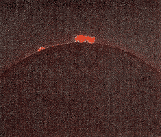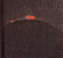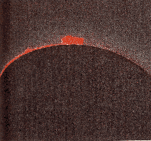 Prominences show up clearly during a total eclipse of the sun, when the glare is masked by the moon. Why not equip a telescope with an artificial moon-an opaque disk just large enough to blot out the sun? Such a disk would be merely an elaboration of your thumbnail, and it would fail for the same reason that the thumbnail fails. The disk of the real moon is located in airless space: hence it casts a knife-sharp shadow. Your artificial moon would cut off the direct rays of the sun but could not stop the rays reflected from all angles by the dust-laden atmosphere. You must equip your telescope not only with an artificial moon but also with a filter which can distinguish between direct rays from the disk of the sun and those from the prominences. This requirement implies a difference between the two kinds of light, because you cannot sort things which are identical. It turns out that prominences are largely composed of hydrogen, which emits a deep red light. The sun as a whole, on the other hand, is composed of all elements, each of which contributes one or more colors to the visible spectrum. White light is a mixture of all these colors. Thus the problem of seeing prominences comes down to dimming the white light as much as possible and filtering it out of the desired red of hydrogen. A limited solution of the problem was devised in 1868. By attaching a spectroscope to a telescope, bringing the slit of the spectroscope tangent with the edge of the sun and moving the slit in a circle around the edge, prominences could be detected. Then the slit could be opened wide enough to see an entire small prominence or part of a large one. Even though this method distorts the image of a prominence, it is still used on special occasions. In 1890 George Ellery Hale and Henri Deslandres independently invented the spectrohelioscope. This instrument utilized the red light of hydrogen to produce an image of the entire disk of the sun. Thus prominences were visible not only at the edge of the sun but also on the face of it. For 40 years the spectrohelioscope was the major source of knowledge about solar prominences. The sun is entirely gaseous. No solid surface lies beneath its outer layers. From the outside in, the outer layers are the corona, the chromosphere, the reversing layer and the photosphere (the layer we see when we look at the sun with the naked eye or a conventional telescope). An orderly mind instinctively seeks to arrange these layers in a diagram resembling the cross section of an onion. Illustrations of this sort do not appear in textbooks, largely because they would convey the misleading impression that the layers have sharp boundaries. The corona, the pale yellow and pearly white outer aura seen during a total eclipse of the sun, is by far the thickest of the four layers. It extends beyond the visible disk of the sun for about one third of its diameter, and sometimes much farther. It is a diaphanous thing, fainter than moonlight. The scarlet clouds of hydrogen that comprise the prominences appear to shoot up from the chromosphere, which contributes only 12,000 miles to the 864,000-mile diameter of the visible solar disk. Although the prominences take various flamelike forms, they are not flames in the ordinary sense because the sun does not burn. The astronomer Edison Pettit classified and named the prominences according to their behavior. There are three active types: "interactive," "coronal active" and "common eruptive." The latter are subdivided into "quasi-eruptive," "common eruptive," and "eruptive arch." Then there are the sunspot types: "cap," "common coronal sunspot," "looped coronal sunspot," "active sunspot," "surge," "ejection," "secondary" and "coronal cloud." The tornado types are "columnar" and "skeleton." Finally there are the, "quiescent," and "coronal" types, which have no variants. Sometimes 20 prominences of these various types are simultaneously visible at the edge of the sun. Sometimes there is no prominence for days. Prominences erupt at velocities up to 451 miles per second; a common velocity is 100 miles per second. They often change from one type to another.
