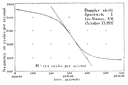 These techniques require that the observer be outdoors, often before sunrise. For the comfort-loving amateur there is another means of keeping track of satellites, at least so long as they transmit radio signals'. Many ordinary radio receivers have built-in converters which enable them to pick up the short waves broadcast by satellites. Even those receivers without converters are easy to adapt to short-wave reception. Converter units, available from dealers in "ham" radio supplies, are priced at about $50. Those amateurs who prefer to build their own converters will find complete instructions in The Radio Amateur's Handbook. Parts for a two-tube converter cost about $15. Ralph H. Lovberg and Louis C. Burkhardt, physicists at the Los Alamos Scientific Laboratory, have suggested a way in which the amateur can determine the height of a satellite as it passes overhead. Their method is based on the Doppler shift, the apparent decrease of pitch noted when a source of sound, such as a train whistle, rushes past the observer. Radio-equipped satellites are in effect whistling objects. Their radio transmitters radiate signals at predetermined frequencies. In the case of the first two satellites the frequencies were approximately 20 and 40 megacycles per second. To measure the distance between the observer and a satellite, the signal from the satellite is tuned in on a radio receiver and mixed with a signal generated by a local oscillator of somewhat higher or lower frequency. The difference frequency is then amplified, fed into a loudspeaker and converted into sound. For example, when a signal of 40 megacycles is mixed with a locally generated signal of 39.997 megacycles, the amplified difference frequency of 3,000 cycles will produce a whistling sound pitched about two octaves above middle C. The period during which the pitch changes may last more than five minutes. The distance of the satellite is determined by measuring the pitch of the sound at brief intervals during this period, and noting the time at which each tone is identified. The frequency of the sound at each interval can be estimated by comparing it with the notes of a piano or, preferably, by following the whistle down the scale with an accurately calibrated audio-frequency oscillator. Whenever the signal and comparison tone (piano or oscillator) coincide (are in zero beat), the corresponding time should be recorded as read from the second hand of a watch or clock.