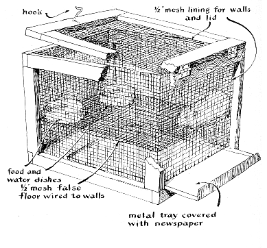 "The prescribed diets should be prepared in bulk and stored in appropriately labeled boxes from which individual food dishes are filled as required. A 50-gram rat will consume on the average about seven grams of food per day. The food dishes should be about two inches high and should have steep sides to prevent spillage. They should be anchored to the floors of the cages and kept filled, because the capacity of a rat's stomach is small. Consequently the animals will eat almost continuously. "The experiment gets under way as soon as the rats have been placed in their cages and supplied with medicated food and water. Each animal should have been marked for identification either by an ear punch or a dye and listed on an individual record sheet with column headings for body length, weight, oxygen consumption and general comments, including a description of hair condition. "As previously mentioned, thyroxin influences the animals' metabolism. The effect can be observed indirectly by means of a number of tests based on one or more of the end products of the metabolic process. The test selected for this experiment measures the rate at which the animals consume oxygen. As described in this department [see "The Amateur Scientist; SCIENTIFIC AMERICAN, August, 1957], the apparatus consists of a large, stoppered jar containing the animal together with approximately eight ounces of soda lime (calcium hydroxide and sodium hydroxide). A graduated pipette serves as a port to connect the air in the jar with that in the room. "Carbon dioxide is exhaled by the animal and absorbed by the soda lime. Oxygen is absorbed by the animal from the inhaled air. Consequently air pressure inside the jar drops, and air from the room flows into the jar through the graduated pipette. This flow can be accurately measured by closing the end of the pipette with a film of soapy water. Air flowing into the tube from the room pushes the film, which serves as a pointer, ahead of it. Graduations indicate the internal volume of the tube at two points: one at five cubic centimeters and the other at zero c.c. "The time required for the soap film to move from the zero graduation to the five-c.c. graduation is a function of the animal's metabolic rate. Measure this interval with a stop watch marked off in hundredths of a minute. Make three runs, add the three stop-watch readings, divide the sum by three and divide the resulting quotient into .3. The result represents the consumption of oxygen in liters per hour. Next square the recorded weight of the animal, find the cube root of the result and divide it by 1,000. This gives the approximate surface area of the animal in square meters. The ratio of the oxygen consumption per hour to the surface area is a measure of the animal's metabolic rate. This figure should be recorded in the appropriate column. "The jar should be fitted with a floor of wire mesh to prevent the animals from coming into contact with the soda lime, as shown in the accompanying drawing [above]. Because soda lime reacts with the atmosphere, the spent chemical should be replaced with a fresh charge before tests are begun.