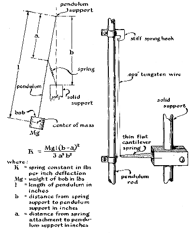 "During the past three centuries considerable progress has been made in the design of pendulums, but many improvements are still possible in the devices used to correct the well-recognized errors arising from changes in temperature and in barometric pressure, from friction in the drive mechanism and from the so-called circular error that makes a pendulum run faster when its amplitude of swing decreases. A much less known, but surprisingly large, error is caused by minute excursions of the pendulum's suspension induced by the motion of the pendulum's weight, or bob. We have investigated this error extensively and have called it support reaction. A number of other minor effects, including those arising from the influence of static electricity and of seismic motions of very small amplitude, prevents a pendulum from running at a uniform rate. Even if all these effects could be reduced to zero, changes in gravity of a tidal nature would produce periodic fluctuations of about .0002 second twice a day. "Most of our recent experiments have been made with the aid of a clock designed by the British engineer W. H. Shortt and used by the National Bureau of Standards until it was retired from service in favor of a clock driven by a crystal-oscillator circuit. The instrument is of the 'master-slave' type and, until superseded by electronic techniques of timekeeping, was perhaps the most accurate mechanical clock available. The pendulum swings in an evacuated housing, has a rod made of an alloy that tends to retain its dimensions despite variations in temperature and is otherwise constructed to minimize the effects of environmental changes on its rate of swing. Our objective was to develop modifications for maximizing the performance of the Shortt clock and ultimately to build a clock of our own that would surpass it. As our standard of comparison we use the time signals broadcast continuously by WWV, the station of the Bureau of Standards. We have not yet built our clock, so the following discussion is in the nature of a progress report. "Of the many variables that affect the performance of pendulums one of the most serious is temperature fluctuation. If the length of a pendulum rod changes by one part in 40,000, a clock driven by it will gain or lose about a second per day. Nearly all materials expand this much with temperature changes of only a few degrees, so it is essential to compensate in some way for the change in length. John Harrison, the eminent British horologist, made the first major contribution to the solution of the problem 200 years ago by inventing the 'gridiron' pendulum, in which brass rods in compression and expanding upward were alternated with steel rods in tension and expanding downward. The rods were arranged so that the length of the brass times its coefficient of expansion equaled the length of the steel times its coefficient. No net change in the length of the pendulum occurred when both metals expanded or contracted with temperature changes. It was an excellent arrangement, and it was widely used until it was outmoded by the invention of 'Invar' early in the present century. The small expansion-coefficient of this nickel-iron alloy permits a 40-inch pendulum rod to be compensated by only an inch or two of brass. In pendulums made of Invar the pendulum bob is bored oversize from the center down. A sleeve of brass is slipped over the lower end of the pendulum rod and rests on the adjustment nut on the end of the rod. The brass compensator supports the surrounding bob near its center of mass, as shown in the accompanying illustration. "This is the worst possible location for the compensator, because the relatively large thermal capacity of the 10 to 15 pounds of metal in the bob prevents the brass from reaching a new temperature as fast as the rod, which is exposed for most of its length. Consequently if the ambient temperature varies, the rod's length varies, and the clock runs at a different rate until the heavy bob and the buried brass compensator reach the new temperature. This means that much greater care must be exercised to maintain a constant temperature than would be the case if the rod and its compensator had more nearly equal thermal masses and exposures, as did the original gridiron construction. "An easy remedy is to add an Invar sleeve, similar to the brass compensator, to extend up into the bob, thus allowing the brass sleeve to be exposed below. It is still desirable to hold a fairly uniform temperature and particularly to guard against temperature stratification of the air. This can be taken care of relatively easily by constructing a closet of light insulating wallboard around the entire clock, by placing an electric fan inside the closet to provide continuous air movement and also by fitting the closet with a thermostatically controlled electric heater to hold the temperature a few degrees above the highest temperature expected in the room. "For extreme accuracy it is desirable to compensate different parts of the rod separately. An ordinary brass or aluminum compensator can be placed inside the bob to take care of that portion of the rod which runs through the bob, while the exposed rod and suspension spring are compensated by brass or by aluminum members having thermal capacities similar to the parts they compensate. "A pendulum rod is usually supported by a thin spring, though all pendulums used to measure gravity are supported by a knife-edge arrangement. Springs are probably better for continuous operation, because they are not subject to wear. Our experiments have shown that even the thinnest practical spring can exert a force equal to a thousandth of the force of gravity acting on the bob. This means that a spring-suspended pendulum is not a pure gravity-controlled device, and that extreme care is needed to keep the force of the spring constant. The stiffness of most spring materials changes with temperature. The coefficient of elasticity of steel cha