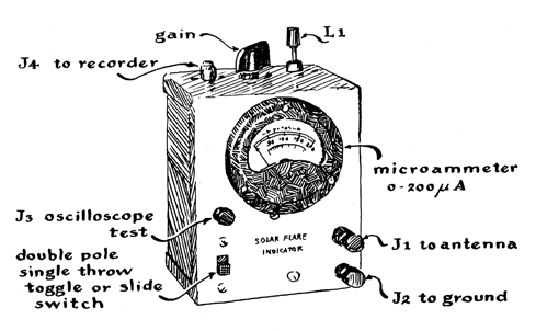 "According to Ellison, the effect was first described by the French physicist R. Bureau, who investigated the enhancement of signals by recording the integrated level of tropical thunderstorm atmospherics at many different wavelengths. He found that sudden enhancements of atmospherics, or 'SEAs,' are characteristic of the spectral range from 7,000 to 16,000 meters, being most pronounced at the wavelength of 11,000 meters (27 kilocycles). There is no question, Ellison wrote, 'of an increase in the number of atmospherics at such times; the phenomenon is simply one of improved propagation at these wavelengths. The reflections take place during the daylight hours from a height Of about 75 kilometers, and typical SEAs have never been observed outside the illuminated hemisphere.' "I gathered from Ellison's lucid description of the apparatus that a station for recording SEAs would be simple and inexpensive to build. Even so, I did not feel competent to undertake the construction. My interests incline mostly toward the analysis of data, and I feel distinctly uncomfortable in the presence of pliers and soldering irons. Our group includes several radio 'hams,' however, and I hoped that I could persuade them to set up a network of SEA stations and turn their recordings over to me. "At about this time Warshaw, who is a member of our group and an electronics specialist in the communications industry, invited me to accompany him on a tour of a solar observatory on Long Island. During the trip I brought up the subject of recording SEAs. He was immediately fascinated and promised to construct a station as soon as I could supply detailed information to him. I still have the note handed to me by my wife one evening a few weeks later: 'November 8, 1955. David Warshaw telephoned. He is building a 27 k.c. receiver.' "Dave finished the receiver in about two weeks. Although it performed well, the design proved to be impractical for amateur use. The original circuit called for costly British vacuum tubes and included a number of intricate biasing and voltage-regulating components to keep the indicating meter from fluctuating excessively during heavy signal bursts. After a short trial Warshaw decided to develop a receiver of his own, utilizing transistors. The power and voltage requirements of the transistor are so low that batteries can be substituted for the conventional rectifier, thus eliminating the need for voltage regulation. The design that eventually emerged from Warshaw's basement workshop calls for only three transistors, a solid-state diode, four coils, six resistors and capacitors, a pair of flashlight batteries and a microammeter. The components cost less than $20. The circuit, including the batteries, is housed in a standard apparatus box measuring only three inches wide, four inches deep and five inches long [see illustration below]. It is fully self-contained and provides enough output to trip a buzzer alarm and drive a pen recorder. "Upon being tested, the new receiver exhibited gratifying sensitivity. Flares of average intensity or above tripped the buzzer, and on several occasions Warshaw found it possible to telephone his industrial colleagues that the cause of a current transmission black-out was ionospheric in origin and not an equipment failure. At this time Warshaw did not own a pen recorder and so was relying on the buzzer to signal the onset of flares. The relay that actuated the buzzer was set to respond to all signals above a predetermined energy level. This arrangement quickly proved to be disappointing. The buzzer responded to all sorts of noise, including interference originating in nearby oil burners, television receivers and electric shavers. SEAs differed from the spurious signals only in their rate of growth and decay, that is, in their 'wave' shape. One way to identify them with reasonable certainty is to make a graph of the signal by plotting signal amplitude against time. The method requires an automatic pen recorder. "Warshaw and another member of our group, George Warren of West Chester, Pa., tried to build recorders, but after some weeks they were forced to conclude that such instruments are beyond the resources of most amateurs. Thus the summer of 1956 found us at an impasse. We could neither build a recorder nor afford to buy a commercial instrument. Without demonstrating the effectiveness of Warshaw's receiver, on the other hand, we could not hope to borrow recorders from some interested government group. Then, one day in August, Warshaw located a second-hand recorder within our means-and the next day he picked up a second one! By September he had the first instrument in working order. "Our first AAVSO Solar Division SEAs Station was now in operation. Up to this point I had acted as little more than a kibitzer. But now I began the analysis of Dave's recordings. I shall never forget the discouragement of those early pen scribbles. The hieroglyphics traced by the 27-kilocycle noise seemed utterly meaningless. The easily distinguished SEAs that stood out so clearly. in the published data simply did not appear! Warshaw's station was located in Brooklyn at the intersection of Atlantic Avenue and Flatbush Avenue, where ignition noise is emitted by passing auto. mobiles day and night. He is within half a block of the subway and close to a school that teaches electric welding! Disturbances from these sources appeared at first to mask all other effects. "Warshaw nonetheless persisted. Finally, on October 4, our first 'no-doubt-about-it' SEA appeared on the record. In fact, the tracing for this date displayed three clear flares. These were immediately confirmed by Robert Lee of the High Altitude Observatory of the University of Colorado. "In the meantime Walter A. Feibelman, a physicist of Pittsburgh, Pa., became interested in the project and built a station after Warshaw's design. In May, 1957, he submitted some of the clearest SEAs ever recorded by our patrol. Our second stat