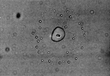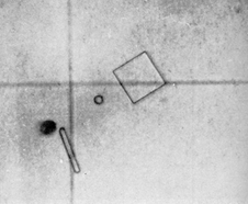 "Then I took the road that goes east along the shore toward Playa Grand here, over a stretch of about one kilometer and some 100 meters away from the water, I exposed another four slides while driving against the wind. Subsequently I went up the hill to the Playa Grande terrace, where I was 60 meters above sea level and some 200 meters from the water (500 in the direction the wind), and exposed another four slides. "From this high point there is a panoramic view of the shore, and I could the calina coming from the sea and being blown up toward the mountains, blurring both the horizon and the profile of the coastal range. The temperature was 34 degrees C. and the relative humidity was 54 per cent. "Then I exposed a number of slides along the autopista, the superhighway, between Caracas and the sea. Relative humidity was between 40 and 45 per cent, the temperature was around 34 degrees C. The series gave me an excellent sampling of particles from the shore up to 1,000 meters. "With great curiosity I went to the microscope to examine the slides. The first surprise came when I found some perfect salt crystals preserved in the balsam of slides exposed near the surf. How could they have crystallized out so soon? I found them again and again, associated with sea-water drops, in slides exposed on the road along the shore and in those exposed at the Playa Grande terrace. There was no doubt: the sea air, even close to the shore, contained salt crystals. It could be, of course, air turbulence had brought these crystals from a great height or a long distance But their frequency made this unlikely. Apparently crystallization takes place over a very short distance-a sort of spray-drying caused by the atomization of the sea-water drops into a relatively dry atmosphere. "Then, in the Playa Grande slides, I found a most interesting thing: all the stages of the process of formation of the salt crystals (which are perfect cubes) could be seen, starting with drops of sea water and moving through the intermediate steps. Furthermore-and this was particularly important-there were great numbers of small, spherical droplets around the large drops that contained the salt crystals. These small droplets resembled the mysterious spherical particles that universally accompanied the salt crystals on all slides of the calina. The resemblance was not only in shape but also in size. I was struck by one particularly fascinating detail that was difficult to photograph because of the extremely flat depth of field: the microdrops showed a tendency to cluster around both the crystals and the drops that were in process of crystallization [see illustration in Figure 3]. "Greatly encouraged by having found the characteristic way in which sea spray behaves during the crystallization of its salts, and intrigued by the curious sequence of associated events, I began to study the slides made along the autopista. They contained many dust particles, bits of carbon from the automobile exhaust and minute pieces of glass, all of which are to be expected in the vicinity of a highway that carries heavy traffic. I found little crystals of salt the same size as those of Playa Grande. They measured about two-hundredths of a millimeter across and weighed on the order of a milligram. In many cases the crystals were surrounded by microdrops. "The more I observed this phenomenon, the more puzzled I was..At first I thought that the clusters were a 'splash' effect resulting from the impact of the crystal, or the drop containing the crystal, against the Canada balsam. But when I saw the phenomenon repeated time and again, I became convinced that even in the air the microdrops were clustered around the salt crystals like tiny satellites. "Pondering on this curious phenomenon, it occurred to me that the particles might be charged with static electricity and so be attracted to a crystal nucleus of opposite charge. An obvious experiment was to charge the microscope slides by rubbing them with an electrifying agent. This I did on the roof of our office building, holding the slides with plastic tongs and rubbing some with a silk handkerchief and others with a camel's-hair brush. After 20 seconds of exposure to the air the electrified slides were protected with cover slips held in place by Scotch tape stuck along the edges. It was a hot, dry afternoon (30 degrees C and 28 per cent relative humidity in the shade). The results were dramatic: not only had I captured the particles in great numbers, but also they had attached themselves to the slides in the very spots where the glass had been rubbed! On the slides electrified with the camel's-hair brush trails of microdrops actually traced the path of each hair [see illustration in Figure 4]. I had captured almost exclusively the microdrops, which, probably due to difference of charge intensity, had divorced themselves from the salt crystals. "The dryness of the air again pointed up the question of the composition of the microdrops. How could they subsist, without evaporating, in such a dry, hot atmosphere? "The season of the calina was now approaching its end and it was urgent to gather enough drops for chemical analysis. Some of my technical friends hurriedly built a small electrostatic separator, obtaining the necessary 15,000 volts from a television set. With this apparatus we were able to collect a few milligrams of the microdrop material before the calina disappeared. Spectrographic analysis of the metallic components, which is all that could be done on such a small sample, indicated the presence of sodium, magnesium and calcium along with copper from the electrical apparatus and some aluminum, probably from clay in the dust collected with the calina particles. "In the few remaining days of the season I prepared most of the slides without balsam by electrifying the glass with either the camel's-hair brush or with Saran Wrap, a plastic film [see illustration in Figure 5]. This gave me dry mounts of the part