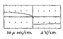 "Assume that such an apparatus has been assembled and that the rheostat has been adjusted so that the average voltage across the diode corresponds to a point on the horizontal co-ordinate of the first graph between B and D. At the moment the battery is connected the voltage will start to rise across the diode. The rise will not be instantaneous, because a portion of the energy will appear in the form of a growing magnetic field around the conductors. As the portion of the voltage that appears across the diode rises, current will increase to B. At B the diode becomes an infinite resistance and the voltage across it rises instantly to point C, as indicated by the upper broken line in the graph. The magnetic field surrounding the conductors then starts to collapse and generates an opposing potential that in effect gradually lowers the voltage across the diode at a rate indicated by the graph between C and D. At D the negative-resistance effect appears, the voltage across the diode drops abruptly to A and the next cycle begins. "The action can be observed by connecting the vertical electrodes of a cathode-ray oscilloscope across the diode and the holizontal electrodes to an oscillator for sweeping the beam of the oscilloscope across the screen at a uniform rate and in synchronism with the oscillating diode. When the oscilloscope is properly adjusted, the resulting pattern resembles a Z drawn witll a vertical rather than a diagonal stroke. The upper bar of the Z represents the time that the diode spends in the high-voltage state, as indicated by the region from C to D of the graph. The vertical bar of the Z represents the instant at which the voltage snaps from D to A, and the lower bar the time spent by the diode in the region of positive resistance between points A and B [see Figure 1].