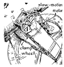 "The supporting fork is made of welded boiler plate and channel sections rigidly attached to one end of a solid steel shaft four inches in diameter that functions as the polar axis. The south end of the shaft rests in a thrust bearing that can be adjusted both laterally and vertically to point the shaft precisely toward the north celestial pole. The north end of the shaft makes a close fit with the center hole of the 1,500-pound flywheel, the rim of which rides on a pair of solid steel cylinders that are rotated by a clock mechanism. The cylinders and the thrust bearing thus form a three-point suspension, with the front points-the two cylinders-spread 15 degrees to the east and west of center. The entire instrument rests on a triangular pier of concrete that extends down to the solid rock of the mountain. The image is correspondingly rock-solid, even when the instrument is used at magnifications 36 per cent above the normally accepted limit of 50 diameters per inch of aperture. "Although the tube and the movable parts of the mounting weigh more than 1 1/2 tons, the assembly can be rotated easily by hand in both right ascension and declination. For convenience and particularly for photographic observing, the tube is driven in both axes by electric motors. Sidereal drive is supplied by a 1/150-horsepower synchronous motor that operates from the 60-cycle power line. It carries the load easily without heating. The tube is advanced or retarded in right ascension by a second 1/150-horsepower motor geared to the drive mechanism through a differential. The drive mechanism also includes a gearshift for tracking either stars or the moon, and an electric clutch that allows the tube to be slued by hand. A universal motor drives the tube in declination through a train of gears at a rate that enables the observer to cut the moon's disk easily into eight parts. All three motors are controlled through a cable that terminates in a portable switch box at the eyepiece. "The tube carries a platform just behind the cell of the objective mirror for supporting cameras, spectrographs, photometers and related accessories at the Cassegrainian focal plane. All instruments seat against stops in the platform so that they can be removed and then returned precisely to their former positions. I use either of two cameras as plateholders: a Leica M2 with or without its lens and a Medalist II. The Leica is focused by means of a microscope attachment and the Medalist is focused through a ground glass. When fitted with these plateholders, the optical assembly acts as a camera of substantial light-gathering power.