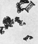 "One minor difficulty that can plague the beginner is the sublimation of the crystal as the solvent evaporates. Another is 'blooming,' the formation of a white, powder-like surface on the normally transparent plastic film. Blooming occurs during evaporation if the surface of the film cools below the dew point of the surrounding air so that moisture condenses on the drying surface in the form of tiny water droplets or frost. Ways to prevent blooming include maintaining the replica solution a bit colder than 0 degrees centigrade, reducing the rate at which the solvent evaporates (such as by immersing the replica in an atmosphere charged with enough solvent vapor to retard evaporatiO21) or lowering the relative humidity. "For optimum results the concentration of Formvar in solution must also be adjusted with respect to the size of the particles to be replicated. In the case of 'diamond dust'-ice crystals that rarely exceed .2 millimeter in diameter-and other crystals up to approximately one millimeter in diameter, the concentration of Formvar in solution should range between .1 and .5 percent when ethylene dichloride is used as the solvent. Such a proportion, for example, would be .1 to .5 gram of Formvar in 100 milliliters of ethylene dichloride. The concentration can be increased to 1 percent in the case of ordinary snow and frost crystals. For replicating snow on the ground, as well as rime and graupel (also known as soft hail), the concentration should be increased to 2 percent or more. "Evidently luck was with me on the occasion of that first experiment. I have never hit on a more effective replicating material. Still, materials other than Formvar dissolved in ethylene dichloride can be used. Any solvent can be substituted that is not soluble in water. For example, chloroform can be used if more rapid evaporation is desired. Accelerated evaporation induces quicker cooling, however, thereby encouraging the condensation of moisture and the possibility of blooming. The experimenter should avoid such common solvents as acetone, amyl acetate and alcohol because they are soluble in water. Similarly, benzene is unsatisfactory as a solvent because it solidifies before it reaches the freezing point of water.
