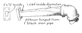 "The top of the framework consists of a sheet of 3/4-inch plywood on which the wind tunnel and the optical system are mounted A lead-in pipe extends vertically through the platform and terminates in a quick-acting gate valve operated by a self-contained motor. The valve, a surplus item, was secured from the Surplus Center, 900 West 'O' Street, Lincoln, Neb. 68510. It is listed as item No. JX07 and priced at $4.25. The valve is vacuum-tight when closed. Although the motor is designed for direct current at 12 volts, I power it with alternating current from a variable-voltage transformer. For quick operation I use up to 60 volts. "The intake side of the gate valve connects to the diffuser through a 90degree pipe elbow. This arrangement makes it possible to mount the wind tunnel horizontally. The design of the diffuser depends on the shape and size of the test section. If the test section is rectangular, as it is in my apparatus, the diffuser must provide a smooth transition from the rectangular cross section at one end to the circular cross section at the other. The diffuser can be constructed by a variety of techniques. Mine was made by altering the shape of a pipe nipple that fitted the gate valve. A tapered bar of iron that matched the cross section of the test section was driven into the unthreaded end of the nipple after the nipple had been heated to redness with a blowtorch. A matching flange was welded to the rectangular opening of the diffuser. Four holes were drilled in the flange for attaching the assembly to the stilling chamber [see lower illustration below].