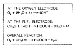 The performance of automobiles and of most other powered machines could be upgraded to this level of efficiency by a single technological advance: the development of a device for transforming the energy of chemical bonds directly into electric current. Most devices now used for harnessing the energy of fuel, such as internal-combustion engines, employ a process that involves three or more wasteful steps. Fuel is first burned, a reaction in which electrostatic energy is liberated in the form of heat. The heat is then converted into mechanical energy by the moving parts of the engine. In many installations the mechanical energy is finally transformed back into electrical energy by an alternator or a dynamo. Each transformation proceeds at the cost of wasted energy. For this reason experimenters, both professional and amateur, have long dreamed of developing an inexpensive, compact and durable electrochemical cell that would make the transformation in a single step. In theory such a cell could be made. The first promising step toward its development was taken by Alessandro Volta 175 years ago. Volta's apparatus, the predecessor of the ordinary dry cell, consisted of small pieces of cloth moistened with brine and sandwiched between alternating disks of zinc and silver. The device was an effective converter of energy, as indicated by Volta's report of an early experiment: "I have finally succeeded in stimulating my sense [of hearing] with my new apparatus. I introduced into my ears two metal rods with rounded ends and joined them to the terminals of the apparatus. At the moment the circuit was completed I received a shock in the head: and a few moments afterward, the circuit remaining closed, I began to hear a noise which I cannot well describe. It was a crackling...or boiling. This disagreeable sensation, which I feared might be dangerous, has deterred me so that I have not repeated the experiment." The energy responsible for Volta's discomfort was liberated at high efficiency in a single step by a chemical reaction in which the metal, particularly the zinc, served as fuel.