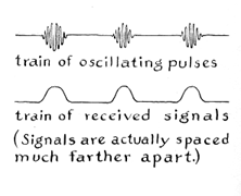 It is this last part of the energy that most interests those who experiment with short-range telemetry, because the energy is strong enough to actuate a nearby radio receiver. The oscillations gradually die away, much as a playground swing eventually comes to rest. A swing vibrates at a characteristic frequency that depends on the length of the swing and the strength of the force of gravitation. Similarly, electrical oscillations in a resonant circuit vibrate at a frequency that is determined by the size of the coil and the capacitor. Swings can be kept going by a series of periodic pushes. Electrical oscillations can likeNvise be kept going in a resonant circuit by adding charge to the capacitor each time the current sloshes back and forth. Periodic charge can be added by connecting the capacitor momentarily to a dry cell with a fastacting, automatic switch. A transistor can function as a switch of this kind. The dry cell is connected to the capacitor through two electrodes of the transistor-the emitter and the collector. Normally the path between these electrodes resembles an open circuit. If a weak current is made to flow in one direction through the emitter and the third electrode of the transistor, called the base electrode, the switch is "on," but when the voltage reverses, the switch turns "off." The dry cell is then connected to the capacitor for a moment until the current again reverses and turns the battery off. In the transmitter under discussion the alternating current that activates the transistor is taken from part of the coil (through a tap that is connected to the emitter) and is fed into the base of the transistor through a one-microfarad capacitor. This circuit is designed to oscillate for a brief interval, turn off for a much longer interval, oscillate again and so on. The pulsing action arises from another characteristic of the transistor, which is that the transistor contains an internal junction between the base and the emitter; the junction acts as a oneway valve for electric current. Current can pass from the base to the emitter, but it encounters resistance in the opposite direction. Because of this rectifying action, charge gradually accumulates in the one-microfarad capacitor. After some hundreds of oscillations the charge becomes so large that it suppresses the switching action. Oscillation then stops while the accumulated charge slowly leaks through the transistor.