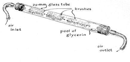 "Having experimented with Kuehner's solution, I decided to take advantage of recent developments in polymer chemistry in the hope of compounding a solution of even greater interest. The result is what I call a 'double bubble' solution: two solutions that are mixed just before use. Bubbles can be blown with either solution, hence the name 'double bubble.' Large bubbles blown with the mixture have lasted for three years so far and are likely to last for many more. From the rate at which one bubble is shrinking I estimate a natural life of more than 20 years. "One of the two solutions consists essentially of Kuehner's dibromostereate soap. The other one is a solution of polyvinyl alcohol, water and glycerin. Bromine is an extremely hazardous substance before it has reacted with the acid, and compounding these mixtures calls for controls that are not available in the home. For these reasons amateurs should not attempt to make double bubble solution. It can be bought from the Techno Scientific Supply Company, Inc., P.O. Box 191, Baldwin, N.Y. 11510. The solution costs $4 a pint, a quantity sufficient to blow thousands of bubbles. "Bubbles can be blown with almost any pipe. As was pointed out by the English experimenter C. V. Boys, however, moisture from the breath tends to condense inside the pipe and drain into the soap film, where it dilutes the solution and hence reduces the life of the bubble. Pipes that are blown by mouth should have a trap of some kind to catch the exhaled moisture. The carbon dioxide in the breath may also be harmful to the bubble. Therefore it is best to do the blowing with compressed air. Small compressors of the kind used for supplying air to aquariums are ideal for blowing bubbles. The rate at which the bubbles are blown can be adjusted by placing a pinch clamp on the tubing that leads from the compressor. To blow big bubbles it is advisable to interrupt the blowing periodically. "Dust is the archenemy of bubbles, particularly dust that contains crystals of salt. It is interesting to set up a bubble in one corner of a room filled with clean air and with a perfume atomizer inject a puff of brine into the air at the opposite corner. Microscopic crystals of salt from the evaporated mist will make their way across the room; within a minute or two they will break the bubble! For this reason I blow my bubbles with 'glycair,' which is air that has been filtered through glycerin. An adequate filter can be made by cutting the bristle sections from four to six test-tube brushes and inserting them into a glass tube they fit snugly. The tube is closed at the ends by perforated rubber stoppers. An ounce or so of glycerin is placed inside the tube, which is kept in the horizontal position. The bristles are moistened with glycerin periodically by rotating the tube.