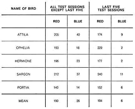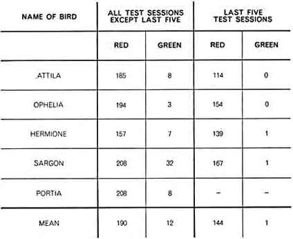 as adjusted for 10 exposures to red and 10 to green, were 144 responses to red