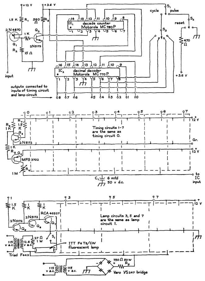 actuate the lamps. The system includes eight separate unijunction transistor