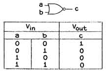 The flip-flop is analogous to a light switch of the pull-chain type. Successive pulls on the chain alternately turn the lamp on and off. Similarly, when pulses of voltage are applied sequentially to the single input terminal of a flip-flop, they cause pulses of voltage to appear alternately at each of two output terminals. NAND gates have two or more input terminals but only one output terminal. When the voltage falls to zero at any or all of the input terminals of the NAND gate, the voltage rises to a maximum at its output terminal. Conversely, the application of a voltage to all input terminals causes the voltage to fall to zero at the output terminal [see illustration at left]. Physically both devices consist of microscopic deposits of metallic films and chemical compounds on minute "chips" of silicon that function as electrical networks of transistors and resistors. Usually several chips are enclosed by a terminal-studded wafer of plastic or ceramic. Circuit designers tend to ignore the internal details of the structures. They combine flip-flops and NAND gates with accessories to form computer systems by following a set of rules that amateurs can easily learn. An introductory project that involves the design of a high-speed counter for use in experiments of many kinds is described by Barry Shackleford, an electronics engineer with the Hughes Aircraft Company. Shackleford writes: "All electronic digital