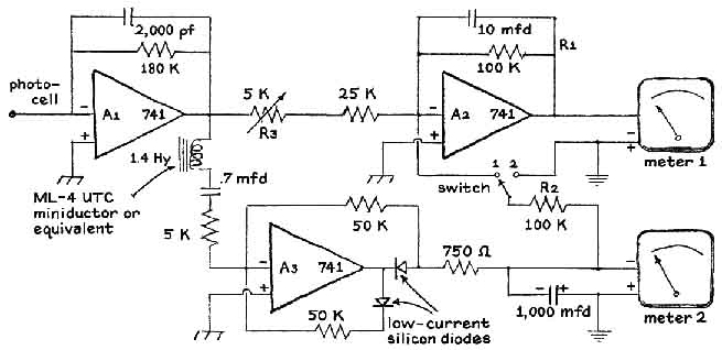 the output of the photomultiplier to a usable level. The alternating-current