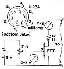 and (3) the gate, G. To test the U234 I connected each of the two transistors