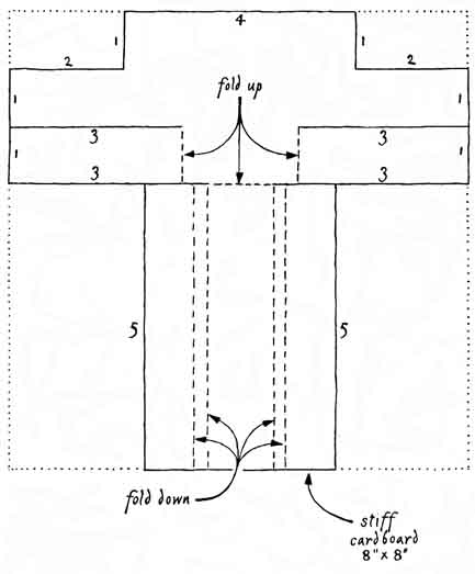 The instrument measures the angle between distant objects. Its introduction into Europe during the 14th century by the Jewish philosopher Levi ben Gershon revolutionized navigation by enabling mariners to find their way at sea in rough weather. Unlike the astrolabe and the quadrant that had previously served navigators, the cross-staff does not require a plumb bob for finding the zenith. Its construction is described by I. L. Fischer, associate professor of physical science and mathematics at Bergen Community College (400 Paramus Road, Paramus, N.J. 07652). "A year ago," Fischer writes, "I was attracted by the idea of having my astronomy students build their own instruments so that they could make observations at home instead of waiting for those rare occasions when the student was free, the weather was clear and the school's limited collection of instruments was available. Most students, including those without particular mechanical skills, managed to make and calibrate a cross-staff within two hours. Only a few spent money for materials. "As its name suggests, the cross-staff consists of two elements: the staff, which resembles a yardstick, and the transversal, which is essentially a mask that makes a right angle with respect to the staff and slides along the staff [see illustration at right]. The staff is graduated in angular degrees. "To make a measurement the user sights along the staff from one end while simultaneously adjusting the position of the transversal until the distant objects appear to line up with the ends of the transversal. The angle between the objects then corresponds to the graduation on the staff indicated by the position of the transversal. The students checked the accuracy of their instruments against a pair of lines that had been drawn on a blackboard with the aid of a sextant. Many instruments were accurate to within .05 degree, and virtually all came within .2 degree. "When the cross-staff is employed in navigation, it is positioned so that the transversal is in the vertical plane. The cross-staff was the first instrument that involved the visible horizon in celestial observations. Latitude could be approximately determined by sighting simultaneously on the pole star and the horizon, thus eliminating the need to determine the zenith with a plumb bob. "A serviceable cross-staff can be made with a sheet of stiff cardboard eight inches square, a smooth length of wood about the size of a yardstick, several rubber bands, scissors, a pencil and a ruler. The accuracy of the instrument can be increased by fitting the staff with transversals of two or more lengths, according to the size of the angles to be measured. The model I designed has transversals of two, four and eight inches. "The transversals are formed from a single sheet of cardboard, which also is cut and folded to form a pair of braces that support the transversals at right angles with respect to the staff and constitute a cardboard sleeve on which the transversal unit slides on the staff. In the accompanying illustration [at left] the solid lines represent cuts and the dotted lines represent folds. The top inch of the cardboard serves as the four-inch transversal, the second inch is the eight-inch transversal and the bottom inch functions both as the brace to support the unit and as the two-inch transversal. "One or two rubber bands hold the sleeve on the staff. The tension should be adjusted so that the transversal slides freely but remains in the position to which it is set. An additional rubber band holds the braces in position on the sleeve. Measure the length of the three transversals as accurately as possible. "To calibrate the staff, mark one of its ends 'eye' on both sides. Measuring from the eye end, draw straight lines halfway across one side of the staff at distances listed in the accompanying table [] for an eight-inch mask and label each line with the number of degrees that correspond to that distance. Then turn the staff over and similarly label the other side according to the part of the table that applies to the four-inch mask. "A third set of graduations