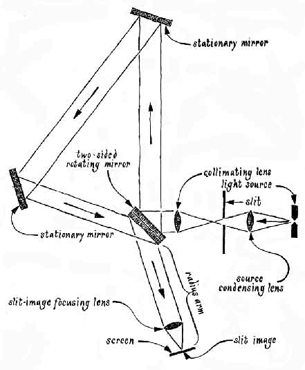 motor was turning the mirror at the rate of 7,200 /60 = 120 r.p.m., or 120 X