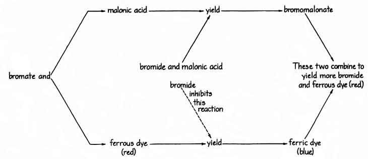 Bibliography THE COLOR BLIND TRAFFIC LIGHT. John F. Lefelhocz in Journal of Chemical Education, Vol.49. No.5, pages 312314; May, 1972. OSCILLATING CHEMICAL REACTIONS IN HOMOGENEOUS PHASE. Hans Degn in Journal of Chemical Education. Vol. 49, No.5, pages 302-307; May, 1972. A REACTION PERIODIC IN TIME AND SPACE. Richard J. Field in Journal of Chemical Education. Vol. 49, No. 5. pages 308-311; May, 1972. AN OSCILLATING IODINE CLOCK. Thomas S. Briggs and Warren C. Rauscher in Journal of Chemical Education, Vol. 50, No.7 pages 496; July, 1973.