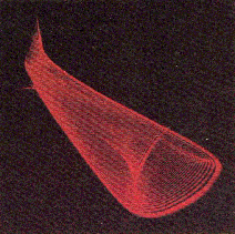 Suppose instead the horizontal deflection of the beam is at a maximum to the right when the vertical deflection is just beginning to send the beam upward. The oscillations are said to be 90 degrees out of phase. As the beam is brought back horizontally it is also being sent upward. When the maximum vertical deflection is reached, the horizontal deflection is zero. What you see on the screen is part of another kind of Lissajous figure; the spot of light traces out a part of a circle, moving from the far right to the uppermost part of the circle. As the oscillations continue, the circle is eventually completed and the tracing begins to repeat the circle. If the oscillations of the mirrors are of low frequency, you can see the spot of light actually trace out the circle. At the frequencies we employed in the light shows the circle was generated so quickly that our persistence of vision gave us the illusion that a completed circle was always on the screen. Laning could control the amplitude of oscillation of each mirror by adjusting the amplitude controls on the audio oscillators. When he made the amplitude of the horizontal oscillation greater than that of the vertical oscillation, the pattern we saw on the screen was an ellipse with a horizontal long axis. Similarly, he could create an ellipse having its long axis vertical. Laning could also control the frequencies of the oscillations by adjusting the frequency controls on the audio oscillators. Suppose he gave equal amplitudes to the oscillation of each mirror but made one mirror oscillate twice as often as the other. Suppose further the higher frequency is on the horizontal oscillation and the two sets of oscillations are in phase. Consider the beam as being initially at the origin of the coordinate system. It begins to move both to the right and upward, but because of the difference in frequencies it has reached only half of its maximum vertical deflection by the time it has reached its full horizontal deflection. It continues to move upward but now has begun to move back to the left. By the time its horizontal deflection has again been reduced to zero it is at its maximum vertical deflection. The path it has traced out is part of a figure eight in its proper vertical orientation. The rest of the figure eight is traced out as the oscillations continue. If the mirrors are oscillating fast enough, persistence of vision gives the illusion of a bright red figure eight on the screen. Similarly, a horizontal figure eight can be created by giving the vertical deflection of the beam twice the frequency of the horizontal deflection. Laning had no way to control the relative phases of the two oscillations. Indeed, the relative phases varied in an unknown way every time he reset the frequencies on the audio oscillators. During the show he therefore varied the frequencies and amplitudes on the audio oscillators until a pleasing pattern appeared on the screen. He could create not only straight lines, circles and figure eights but also more elaborate Lissajous figures. At some adjustments he could create a pattern that slowly changed from a straight line to an ellipse and back again. The changing pattern gave the illusion of a three-dimensional circle revolving slowly on the screen. Sometimes we saw the full circle as if it were slightly tilted out of the plane of the screen. At other times we saw the circle edge on, seemingly perpendicular to the screen. Laning fiddled with the controls during a show so that he could switch from one illusion to another. When he hit on a circle, he sometimes quickly changed the amplitude on both audio oscillators. We then saw a pattern that rapidly and smoothly switched from a large circle to a small one and back again. I had the impression I was peering into the open end of a large pipe. At slower oscillations, when the persistence of vision was not as dominant, the spot of laser light seemed to map out a spiral that constantly came and went on the screen. Laning could pace the illusion to match the beat of the music. A direct response of the laser display to the music can be achieved by using a speaker driven by an audio signal from the source of the music for the show. Yoel ran an audio line from my cassette player, which provided the music, to one of his old stereophonic speakers that he had modified. Over the opening of the woofer cone he stretched a sheet of plastic food wrap and glued it to the rim. (This procedure is easier if the cone is pointed upward.) He worked with common white glue because it was sufficiently strong and stretched the plastic tighter as it dried. During the drying he left a few heavy books on the rim. When the glue was dry, he glued a lightweight mirror directly in the center of the plastic. When the audio signals from Yoel's cassette player excited the speaker, the pressure variations in the air trapped between the cone and the plastic caused the plastic and the mirror to oscillate Yoel then caused a laser beam to reflect from the mirror onto the screen. The constantly changing patterns were therefore in response to the music entering the speaker and were not pure Lissajous figures, but the display was pleasing because it was in time with the music the audience was hearing. The main response was to the low frequencies in the music because of the relatively large volume of air that had to be moved in the cone. Both of these speaker systems require lightweight mirrors, which can be obtained from scientific supply houses. Most mirrors, however, do not reflect very well. If your laser is high-powered, losing some of the light to absorption by the mirror will not matter much. There might still be enough light on the screen for the audience to see. Another problem is that many common mirrors do not give a clean reflection and so add divergence to the laser beam. We bought a mirror of high quality from the Newport Research Corporation (18235 Mount Baldy Circle, Fountain Valley, Calif. 92708) a