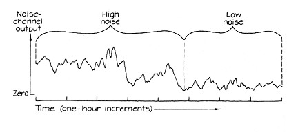 Tune the radio to the local station you have chosen for the experiment. Rotate the antenna about a vertical axis until the sound level is at a minimum. (You may have to rotate the radio too if the antenna is firmly attached to the case.) Adjust the gain until the needle on the fast-signal meter is at about half scale. Check the antenna to be certain it is at the optimum orientation for the minimum sound level. If it is, the needle on the fast-signal meter should be fluctuating slowly and the sound on the radio should have varying amounts of distortion. What you are listening to is the radio signal reflected from the ionosphere. If the detector is surrounded by a good deal of metal, as it would be in an office building or an apartment house, you may have difficulty eliminating the direct signal from the transmitter. Try different locations until you find a suitable one. You can determine the suitability of the location by watching the fast-signal meter. If the nullification of the direct signal is adequate, the needle on the meter will fluctuate steadily. The low-pass filter smoothes these rapid changes so that the strip-chart recorder on the signal-channel output responds to slower variations in signal strength. It takes about five minutes for the recorder to trace out a change in the signal strength. The noise channel requires no adjustment. A sinusoidal trace on the signal-channel output implies that a gravity wave is passing through the region where the radio signal is being reflected. According to Kohl, the pattern emerges out of small and seemingly random changes in the display on the recorder. The time between crests on the trace may be from five to 40 minutes, but usually it ranges from 15 to 25 minutes. One shortcoming of the basic receiver system is that it responds to interference from many sources, such as fluorescent