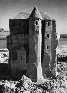 It is a common notion that sand castles are held together by the force exerted by the surface tension of the water in the sand. Water molecules are said to be polar because they have a permanent electric dipole. These dipoles attract each other. At a surface between air and water the mutual attraction of neighboring water molecules puts the surface in a virtual state of tension. When the surface is curved, the mutual attraction provides a collective force on it. On the surface of a sand castle the collective force does help to firm up the sand. The sand is just as firm, however, within the sand castle, where no air spaces remain. Although the water molecules there are loosely attracted to each other by their electric-dipole fields, the attraction is too weak to account for the sand's firmness and resistance to flow. Water molecules in a glass of water are attracted to each other but the water is not firm. When a sand castle dries, it disintegrates because the amount of relatively charged water in it has decreased. During the transition the charges on the surface of the sand grains rearrange themselves. These ions form a double layer of charge, called the Helmholtz double layer, with a positive ion slightly inside the surface below a negative ion outside. The electric field generated by this positioning of charges is weak except directly at the surface. Wherever two dry sand grains touch they repel each other because both surfaces have an outer layer of negative ions. Hence dry sand grains do not adhere. The cohesion of sand is destroyed if some of the water is replaced with glycerol. The molecules of glycerol electrically shield the sites of positive charge on the sand grains, reducing the electric field in the water. With weaker fields there is less ordering of the water layers, and with no immobilization of the water the sand does not hold together. You can demonstrate the effect of glycerol easily. First pack a small container with wet sand so that the sand is reasonably firm. Over the container place a flat plate. Quickly invert the plate and the container without allowing the sand to spill out. With the plate on the floor pull slowly upward on the container so that a mound of sand remains on the plate. Test the strength of the mound by shaking or tapping the plate. Now repeat the experiment with glycerol added to the water mixed with the sand. When you have the assembly inverted, again pull upward on the container. The chances are that the mound left behind is noticeably weaker than the mound without the glycerol. A shake or a tap will probably cause it to collapse. The more glycerol you add to the sand, the less stable the mound is. The result is somewhat surprising. A viscous fluid (glycerol) is poured onto a very viscous mixture (wet sand), and the result is a decrease in viscosity. Wet clay differs from wet sand in several subtle ways. Its particles are considerably smaller than sand grains and are platelike, with one dimension much smaller than the other two. In wet clay the particles are loosely packed and well separated by water. One indication of the looseness is the fact that clay shrinks as it dries.