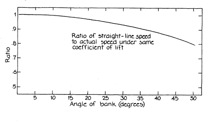 As it stands, the definition of the coefficient of lift is not useful for an amateur watching birds soar, because the lift is always unknown. Therefore MacCready has re-expressed the definition in terms of quantities an amateur can obtain. He replaces lift with the bird's weight. (The ratio of weight to the area of the top surfaces of the wings is termed the wing loading.) The bird's speed is replaced with the speed it would have if it were gliding in a straight line with the same coefficient of lift. This straight-line speed is the actual speed multiplied by the square root of the cosine of the bank angle. The ratio of the straight-line speed to the actual speed can be represented as a graph [see Figure 4]. The ratio is about 1 when the bank angle is small, but it can be appreciably smaller for larger angles. To complete the calculation for the coefficient of lift one needs the ratio of weight to wing area (the wing loading) for the type of bird observed. (You can assume that the ratio is the same for all birds of the same type.) For the frigate birds observed by MacCready the ratio is about 35.1 newtons per square meter. (The newton is the metric unit of force. At one newton a body with a mass of one kilogram would be accelerated at a rate of one meter per second per second.) The density of air, which is also required in the calculation, depends on the air pressure and temperature. Assuming that the birds he observed as they soared were approximately at sea level and in air at a temperature of 15 degrees Celsius (59 degrees Fahrenheit), MacCready took the air density to be 1.225 kilograms per cubic meter. With these values MacCready calculated a coefficient of lift of 1.79 from the 1980 data and .65 from the 1982 data. The two results are different because the straight-line speeds (which depend on actual speed and bank angle) are different. The puzzle about the different bank angles in the two sets of observations in Mexico reappears in the calculations of the coefficients. When MacCready made his first observations of birds soaring in 1976, he expected to find that all birds would soar with the same coefficient of lift. His computations of that year for the turkey vulture, the black vulture and the frigate bird met this expectation. The surprise in the observations of 1980 and 1982 was that the same type of bird does not always soar with the same coefficient of lift. Because the winds in 1980 were smooth and gentle and the winds in 1982 were turbulent and strong, MacCready concluded that the birds made adjustments to change the coefficients of lift depending on the meteorological conditions. In the same way, the pilot of a sailplane flies faster when he is circling in a turbulent thermal (a rising region of warm air) than he does when he is in a gentle one. The higher speed makes the craft less vulnerable to stall if turbulence momentarily increases the angle of attack of the wing. It also gives the pilot greater control. In addition to flying faster the pilot banks the sailplane more sharply in a strong thermal. Soaring birds make such adjustments more effectively because they are more experienced and have better sensors and more ways of adjusting their wings. The videotapes MacCready made in 1982 reveal that in turbulence the birds were constantly altering their bank angle and the shape of their wings, particularly their twist. The wing loading on some hang gliders is in the same range as that on some birds, such as the black vulture. Therefore the pilot of such a glider could utilize a thermal almost as small as the ones birds fly in. The bird, however, still has the edge in controllability. Colin J. Pennycuick of the University of Bristol, an expert in avian biology, once remarked: "I suspect that even if you could simulate a bird's control system, you would need a cockpit so full of levers that it would take an octopus to fly it." Moreover, since birds have shorter wings that take up less of the radius of turning, they avoid some of the wing twist needed to keep the lift the same over both wings. That adjustment is harder with the larger wings of a hang glider. A sailplane has a greater wing loading than hang gliders or birds and flies much faster. It is also quite efficient and sinks through the air more slowly. Nevertheless, it cannot utilize a thermal as small as the ones birds exploit.